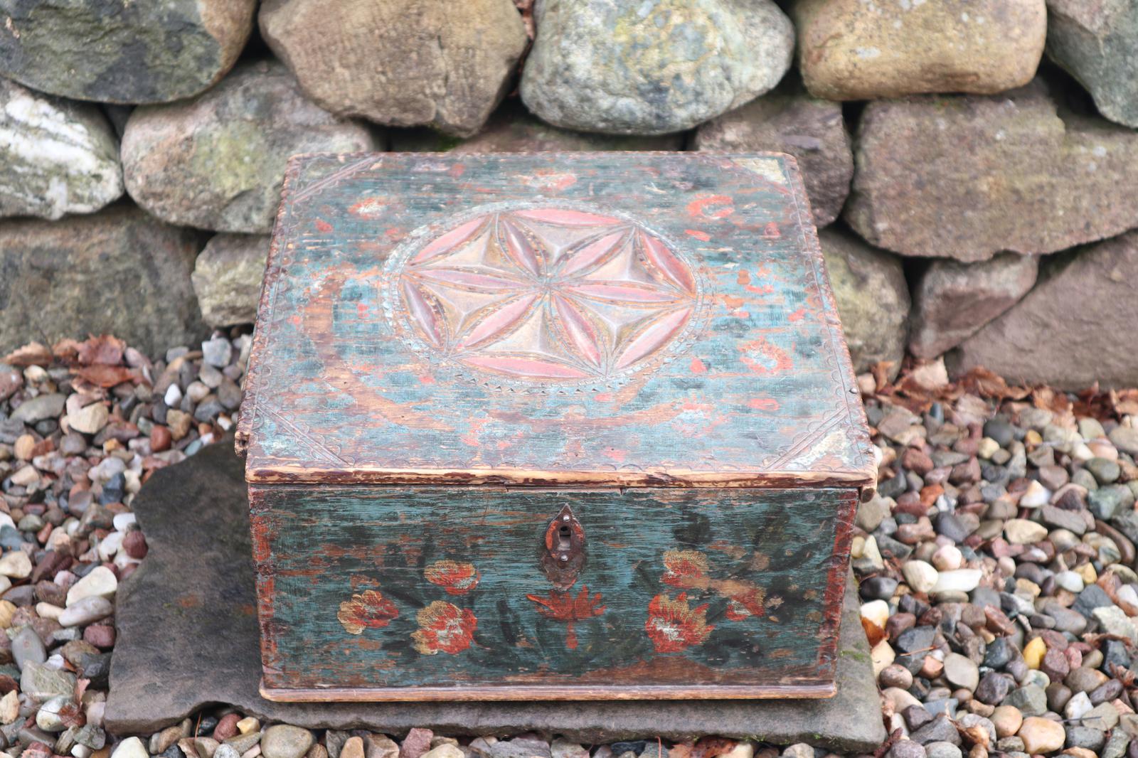 Scandinavian / Swedish 'Folk Art' Writing slope box with chip carving & rosmålning 1803.