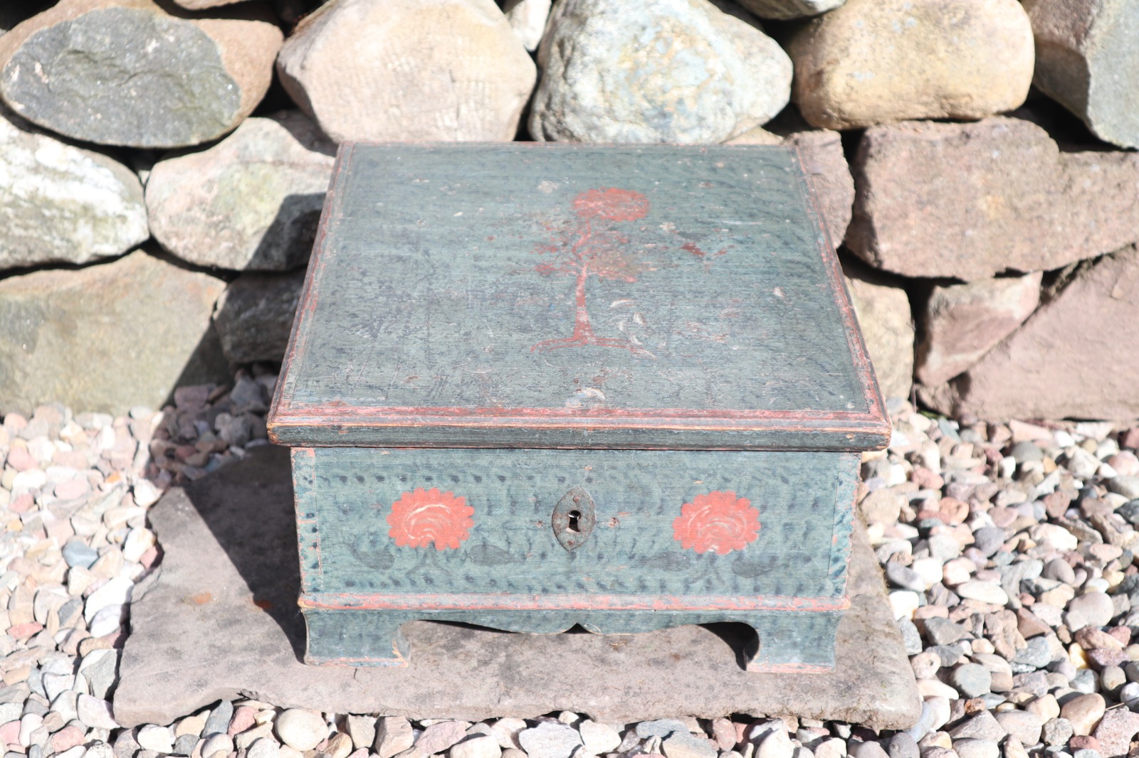 Scandinavian / Swedish Folk Art Writing Slope, Original Paint Blue-Black Marbling & 'Rosmålning, Pine Construction, Late 18th / Early 19th Century (1 of 29)