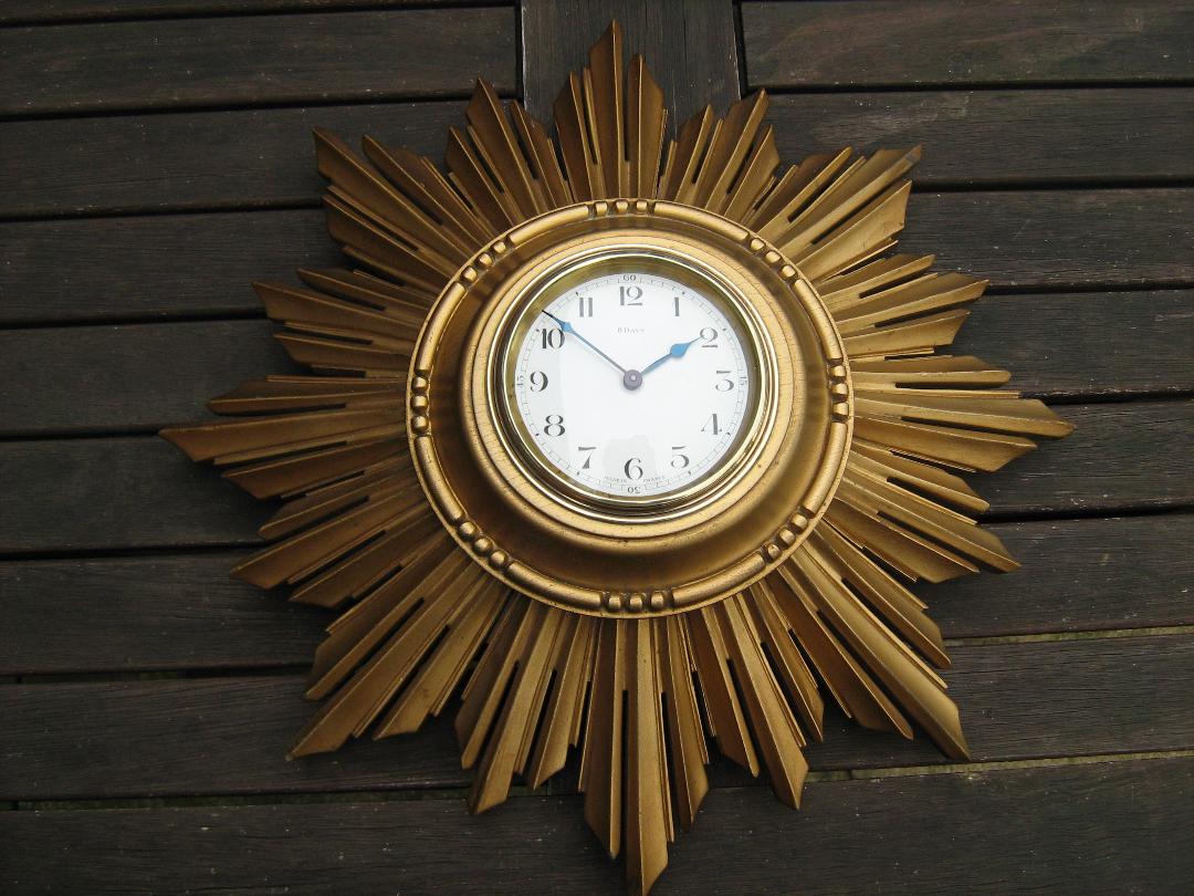 Scarce 1930'S French 'Art Deco' Sunburst Wall Clock. (1 of 1)