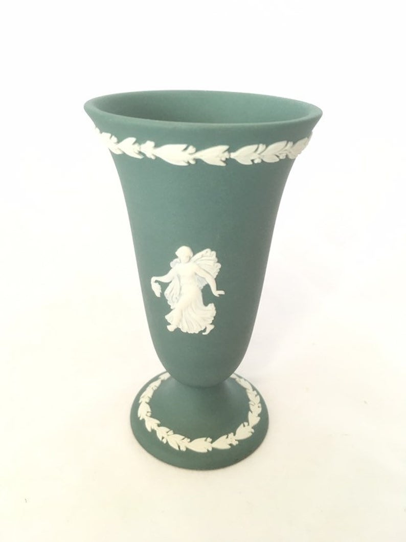 Scarce Wedgwood Teal Jasperware Vase. 20th Century, English Pottery, Wedgwood Collectable