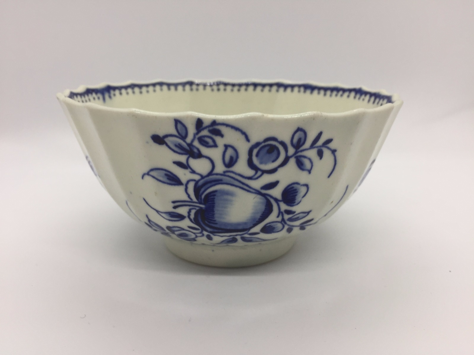 Scarce Worcester First Period Porcelain Press Moulded, Fluted Sugar Bowl Painted with the Fruit Sprays Pattern c.1770-1780