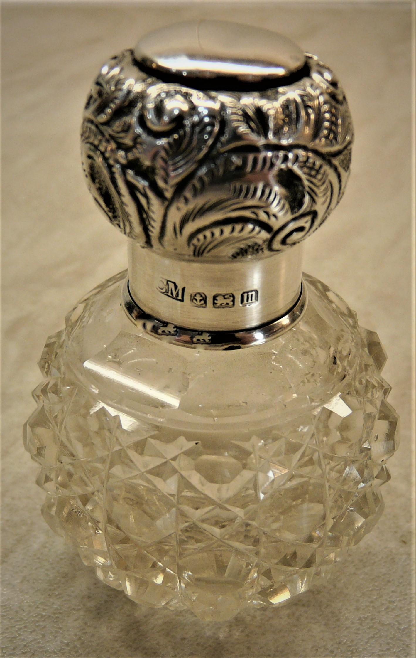 Scent Bottle: Cut Glass Scent Bottle with 1911 Silver Hallmarked Top