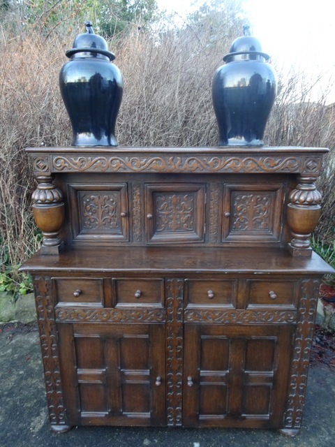 Scottish 19th Century Large Antique Carved Oak Court Castle Cupboard Sideboard
