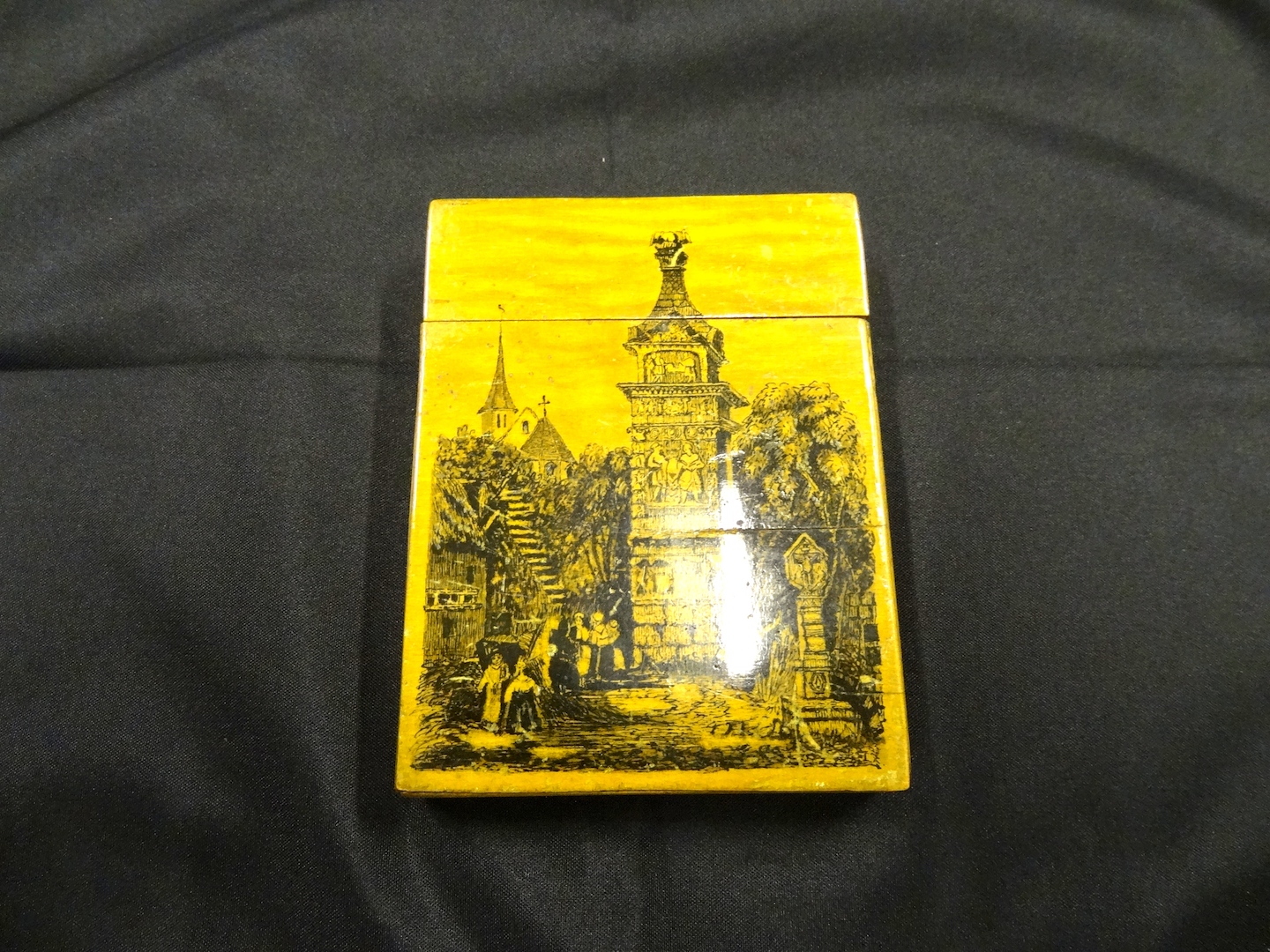 Scottish 19th Century Woodware Card Case, Highgate View, Laurencekirk & Mauchline