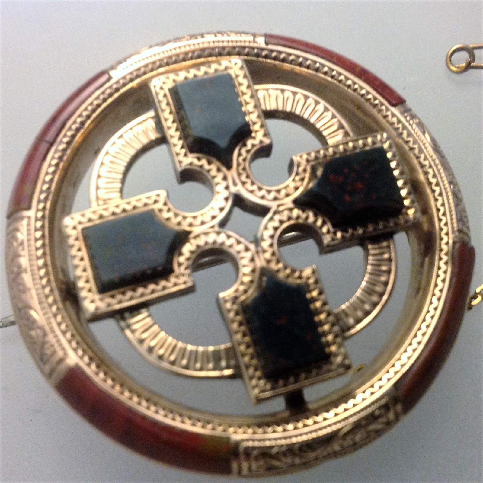 Scottish Agate & Blood-Stone Gold Brooch c.1850