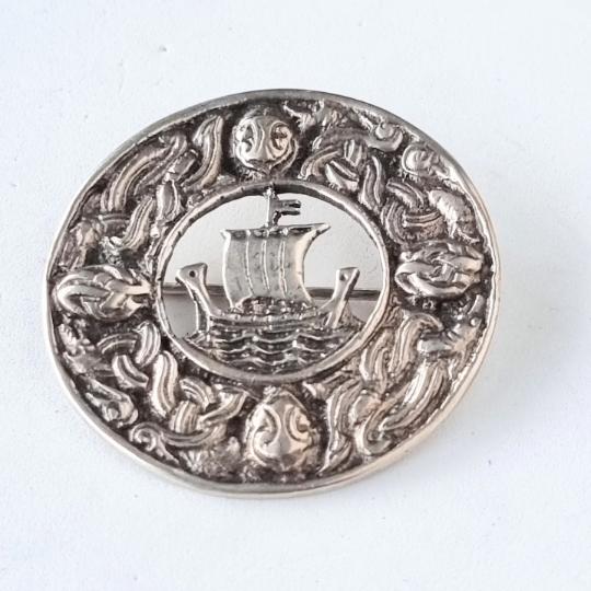 Scottish Celtic Ship or Clan Galley Brooch, Vintage Hallmarked
