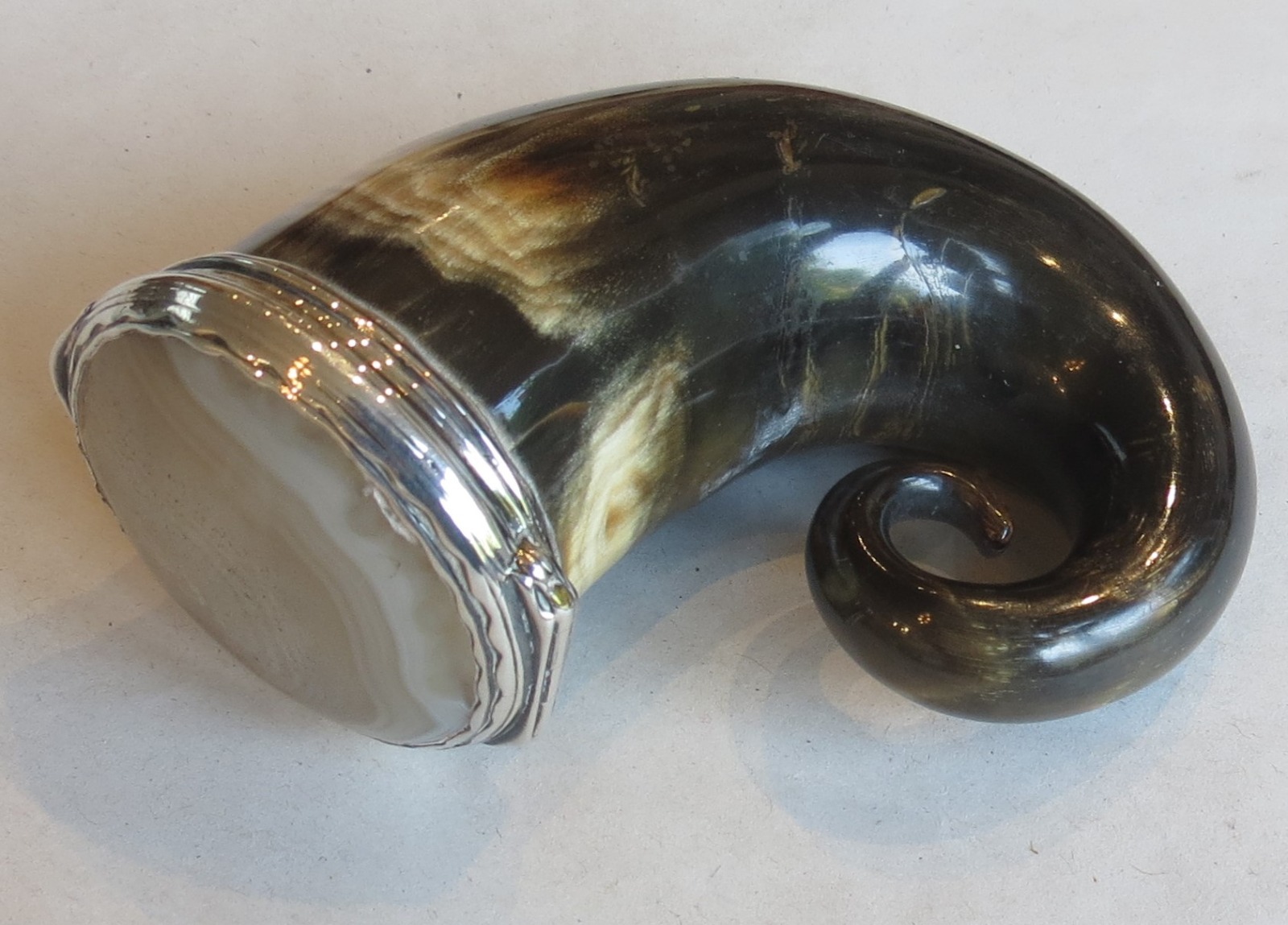 Scottish, Georgian, Horn, Agate and Silver Snuff-Mull