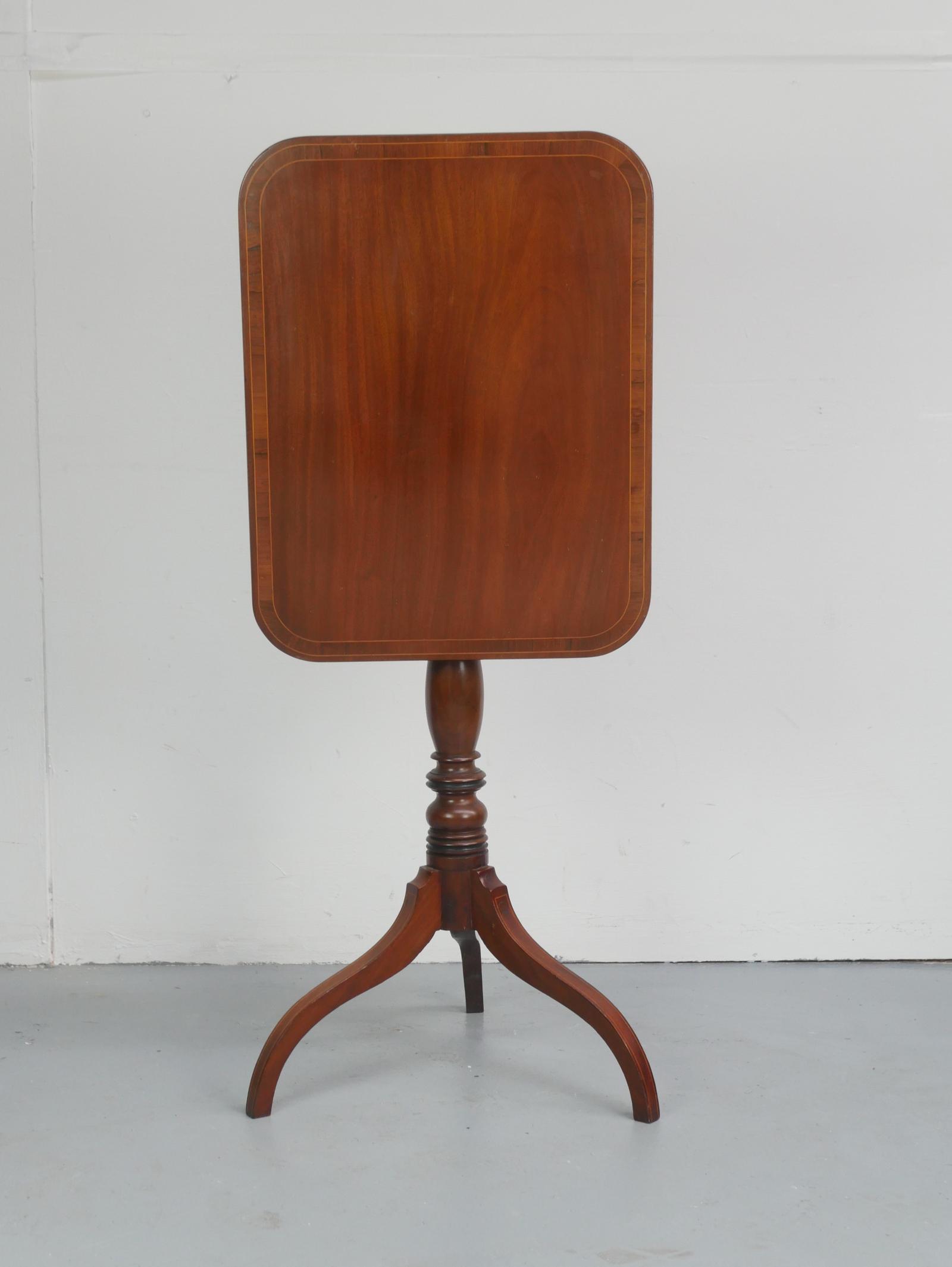 A good quality original Scottish lamp or side table, well-rounded corners with a nice inlaid decoration in rosewood, standing on a well-designed original stem. The table is in good strong condition, with a lovely warm colour, made around 1810, ready to use.