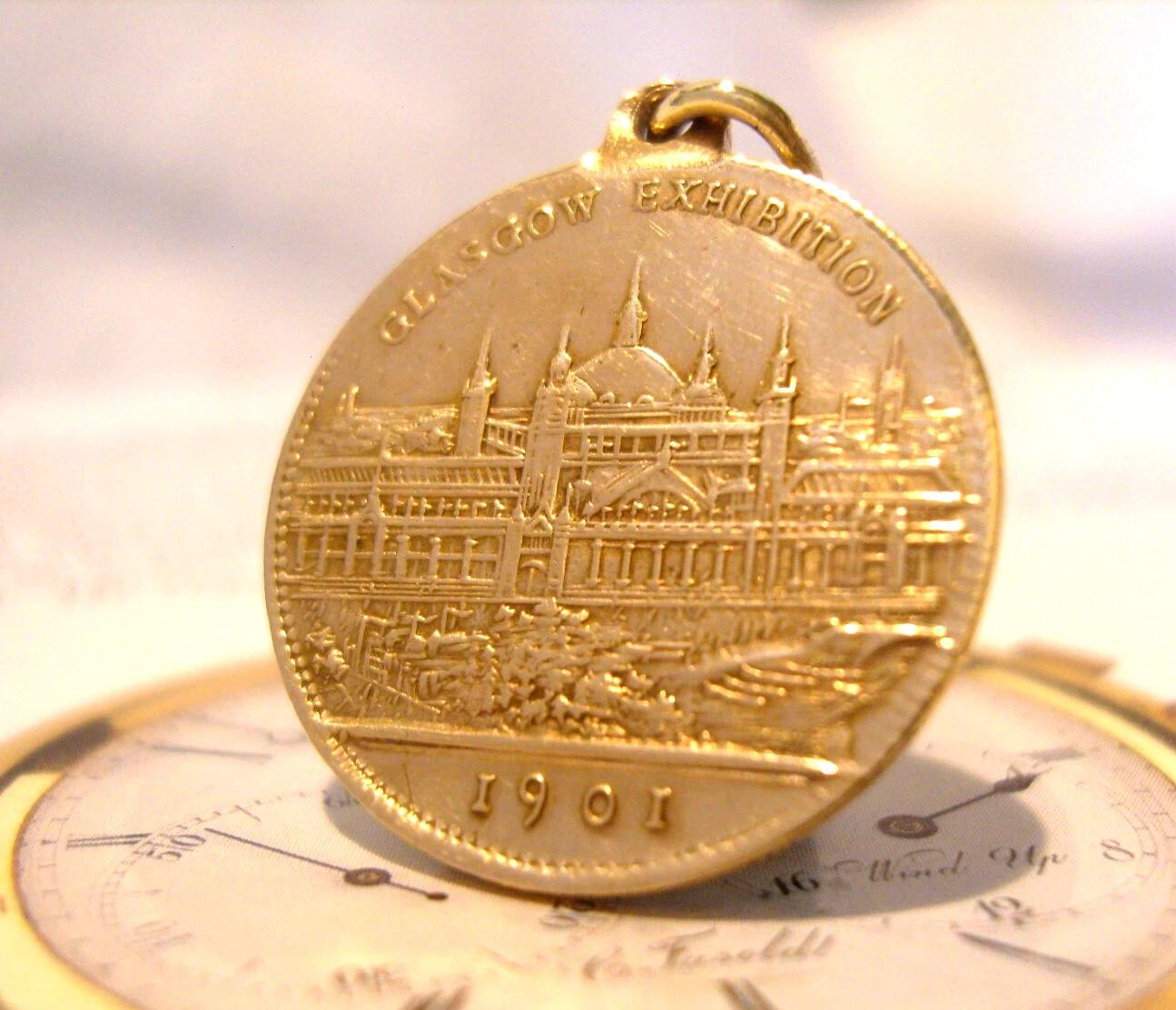 Scottish Pocket Watch Chain Fob 1901 Glasgow Exhibition Rose Gilt Fob
