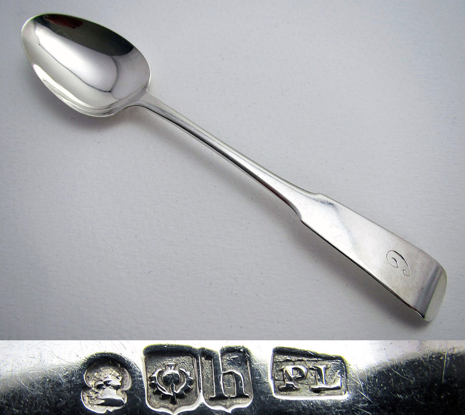 Scottish Provincial, Monogram c.1813 Peter Lambert Solid Sterling Silver Georgian Tea Spoon 'Montrose, Aberdeen, Berwick Upon Tweed'