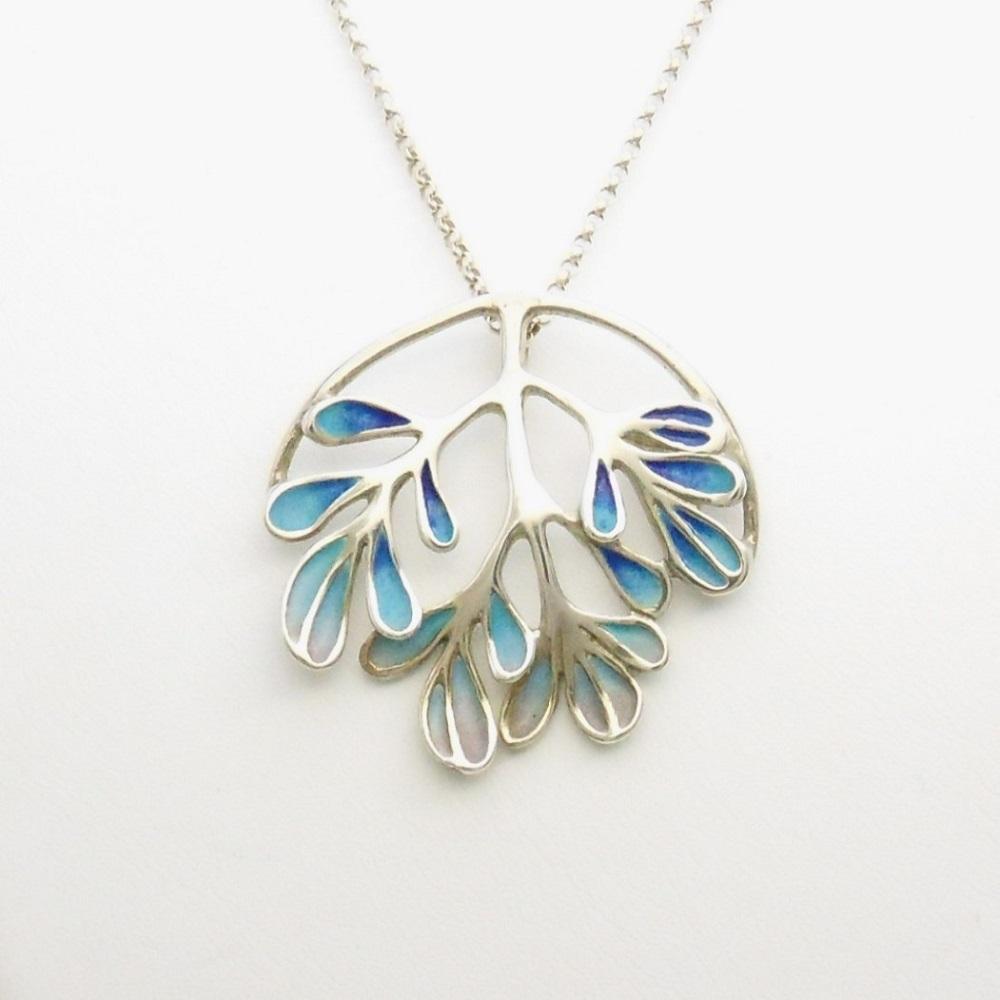 Scottish Silver & Enamel Leaves Pendant by Norman Grant