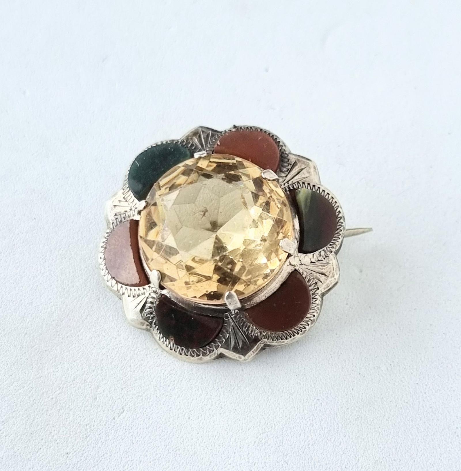 Scottish Sterling Silver Agate & Citrine Coloured Paste Stone