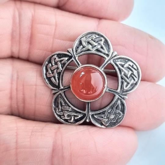 Scottish Sterling Silver Brooch with Orange Stone, Vintage