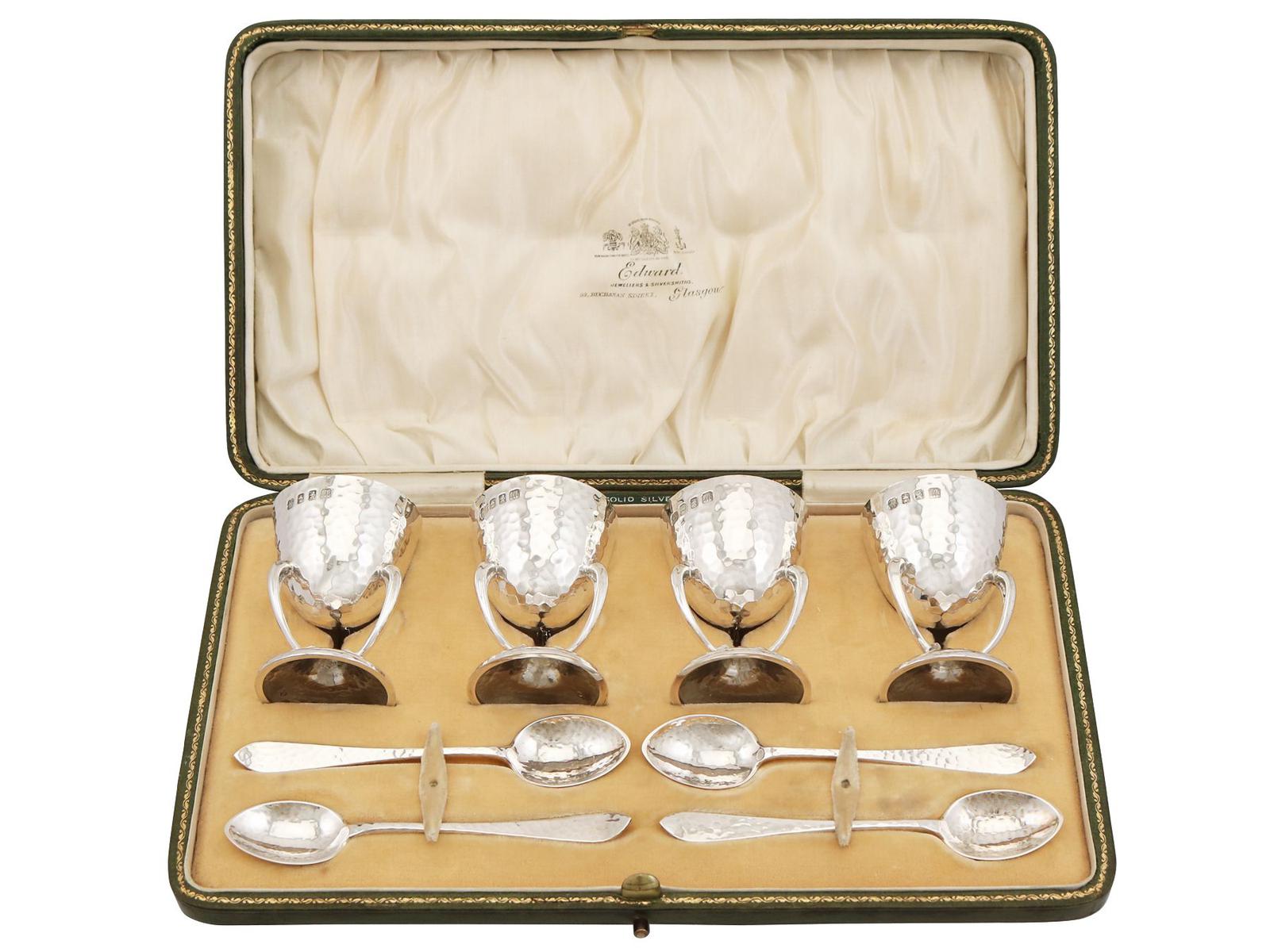 Scottish Sterling Silver Egg Cups & Spoons - Art Nouveau - Antique Edwardian 1909 (1 of 15)