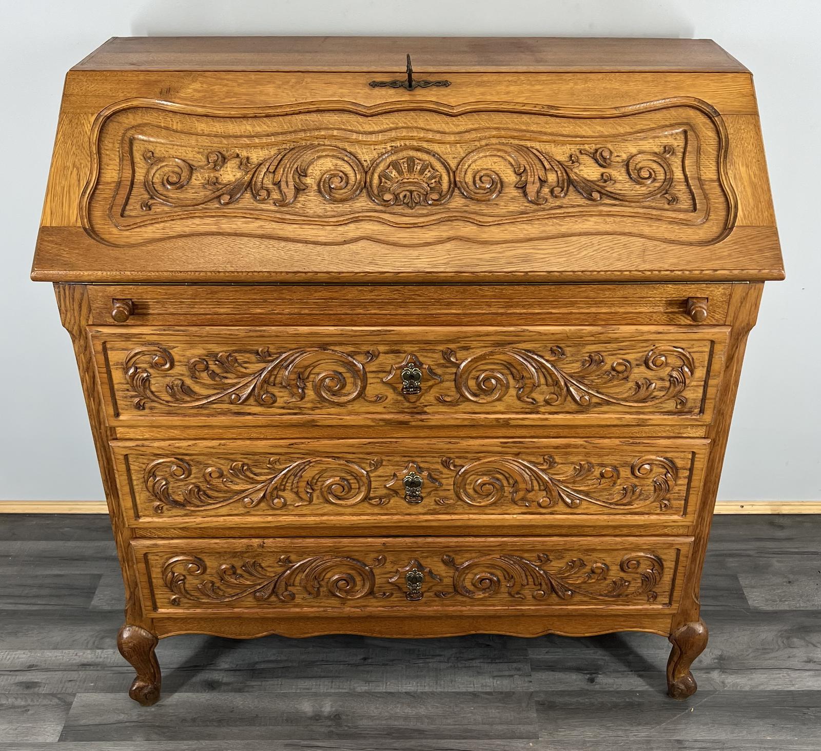 Secretaire Writing Desk - Rare French Carved Bureau Elegant