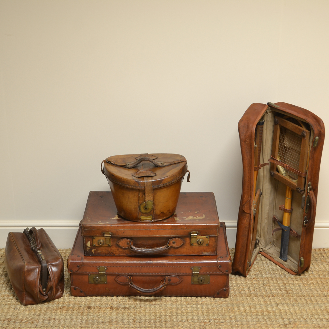 Selection of Decorative Antique Leather Luggage Cases / Trunks