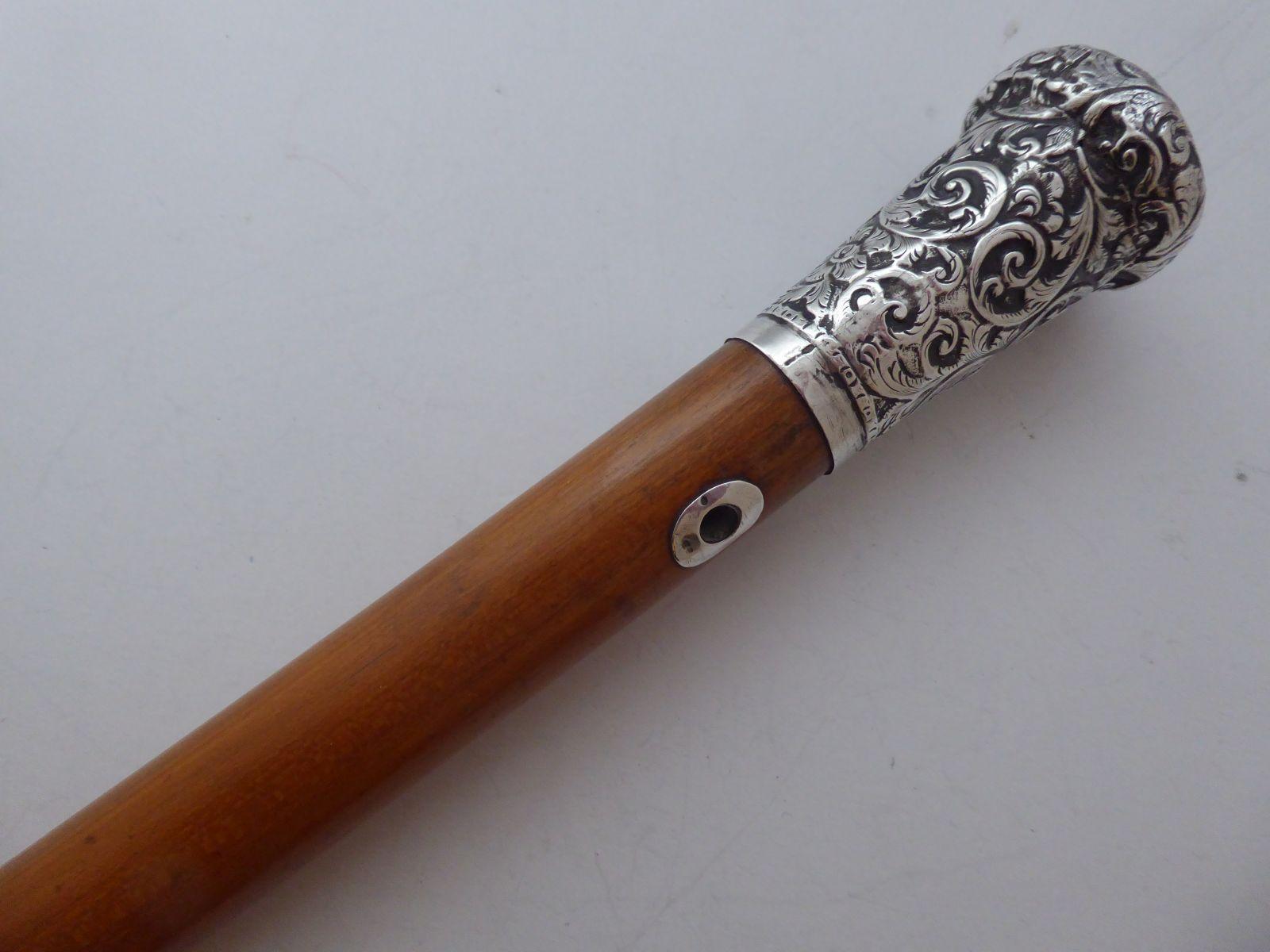 Self Defence Walking Stick Cane Solid Silver Pommel Boxwood Shaft c.1860