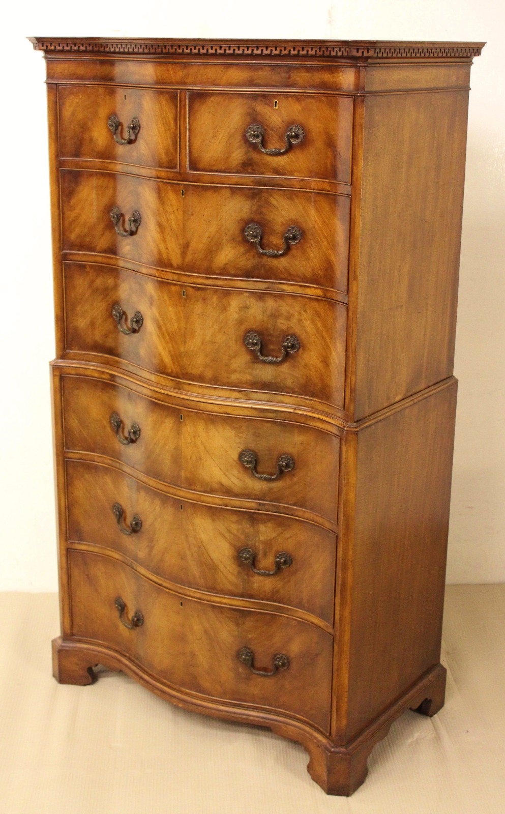 Serpentine Flame Mahogany Chest on Chest c.1900
