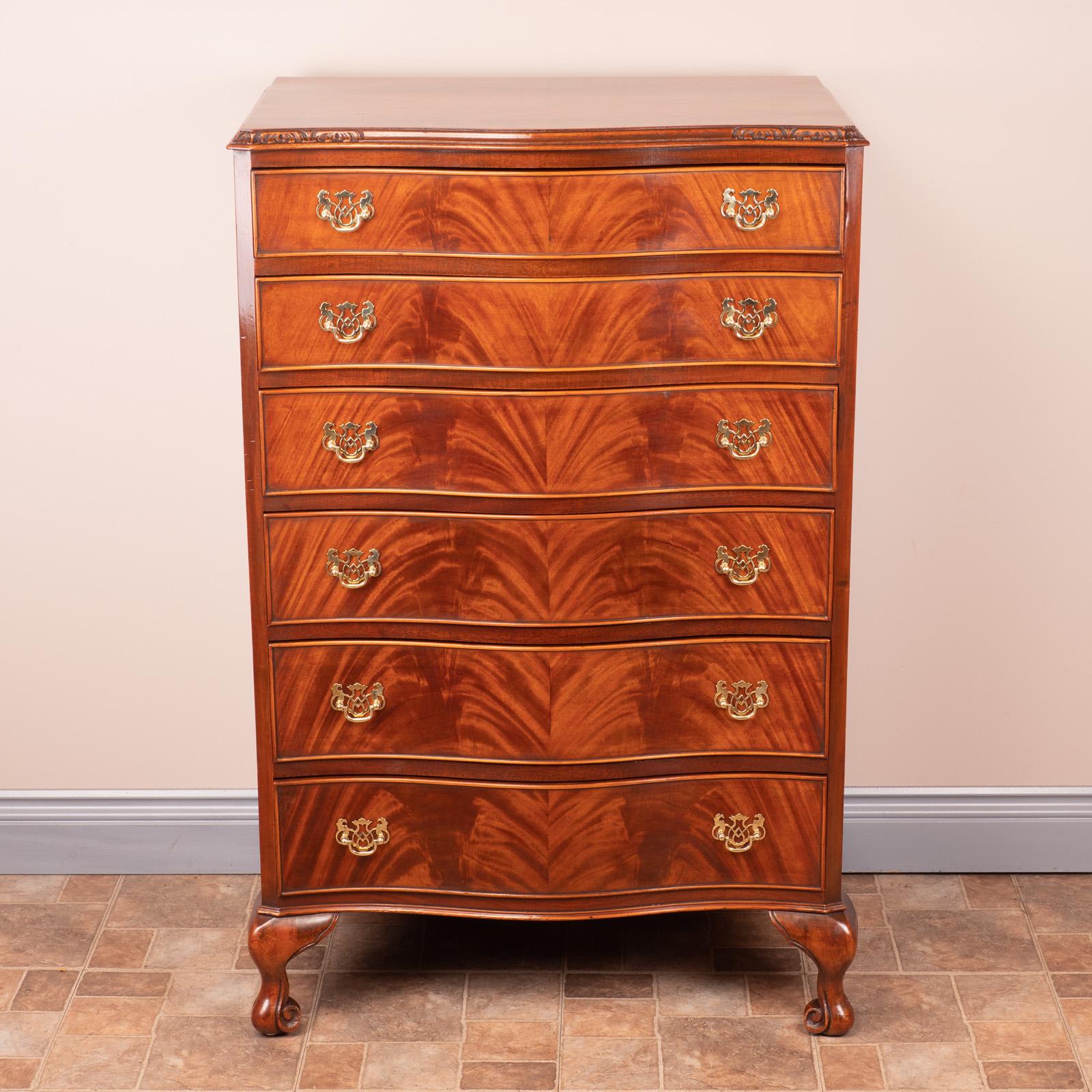 Serpentine Fronted Tall Mahogany Chest Of Drawers
