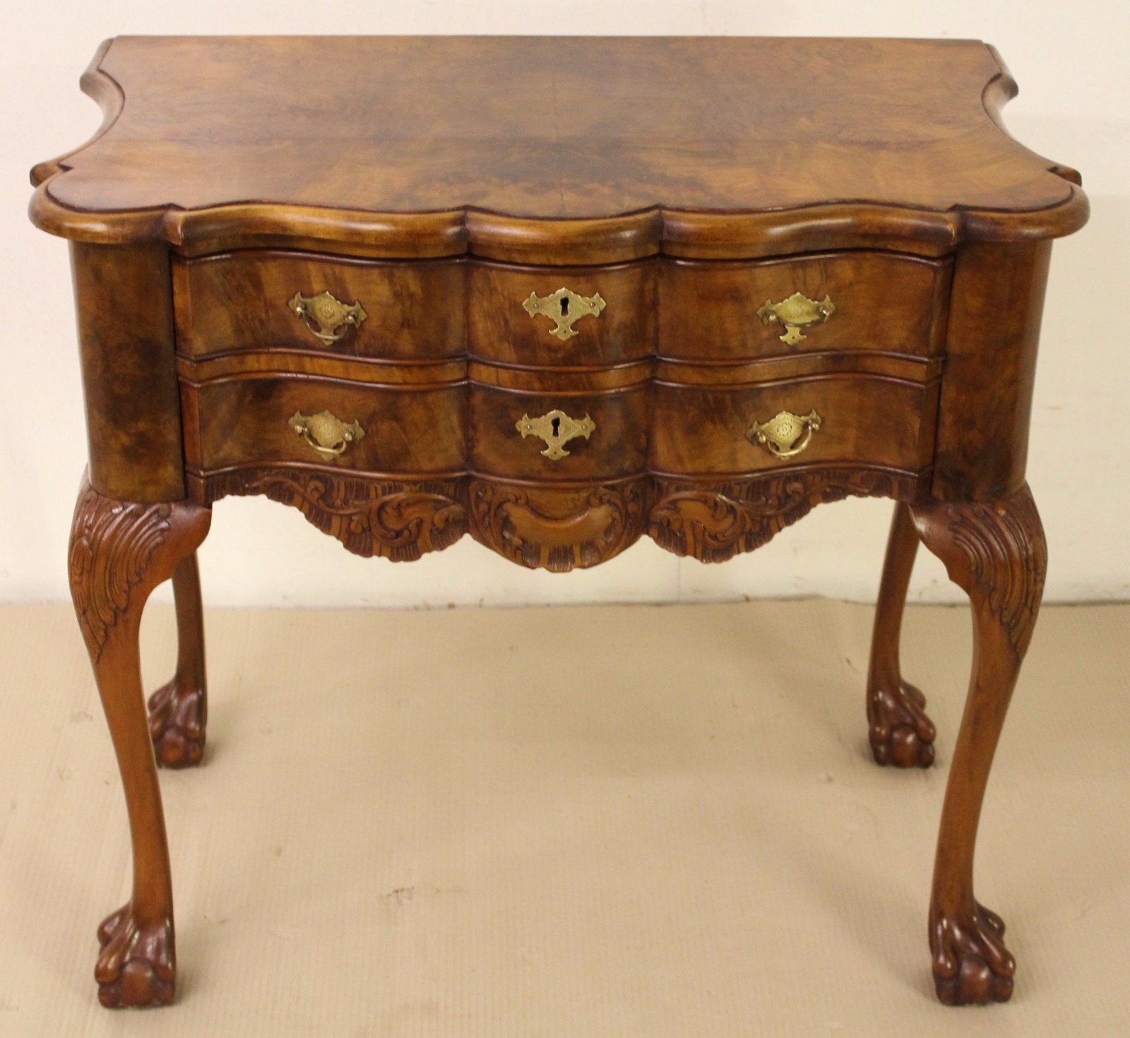 Serpentine Shaped Burr Walnut Lowboy c.1890 (1 of 1)