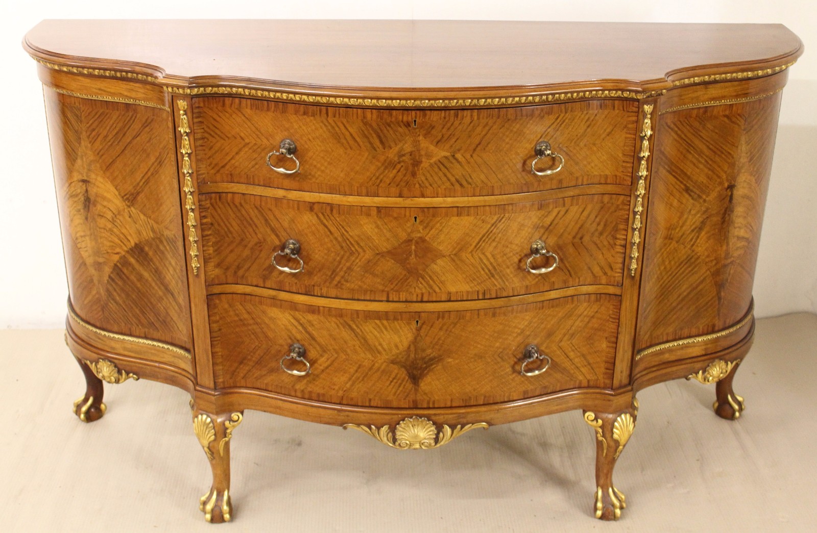 Serpentine Shaped Burr Walnut Sideboard c.1900