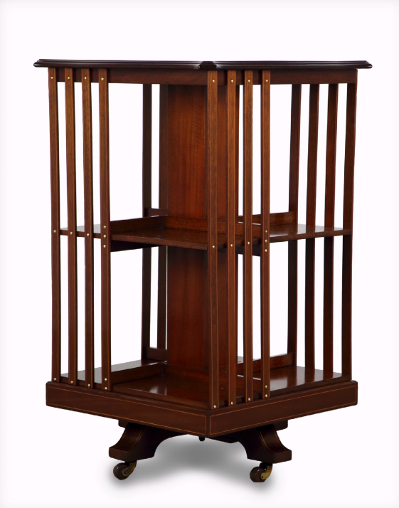 Serpentine Top Inlaid Mahogany Revolving Bookcase