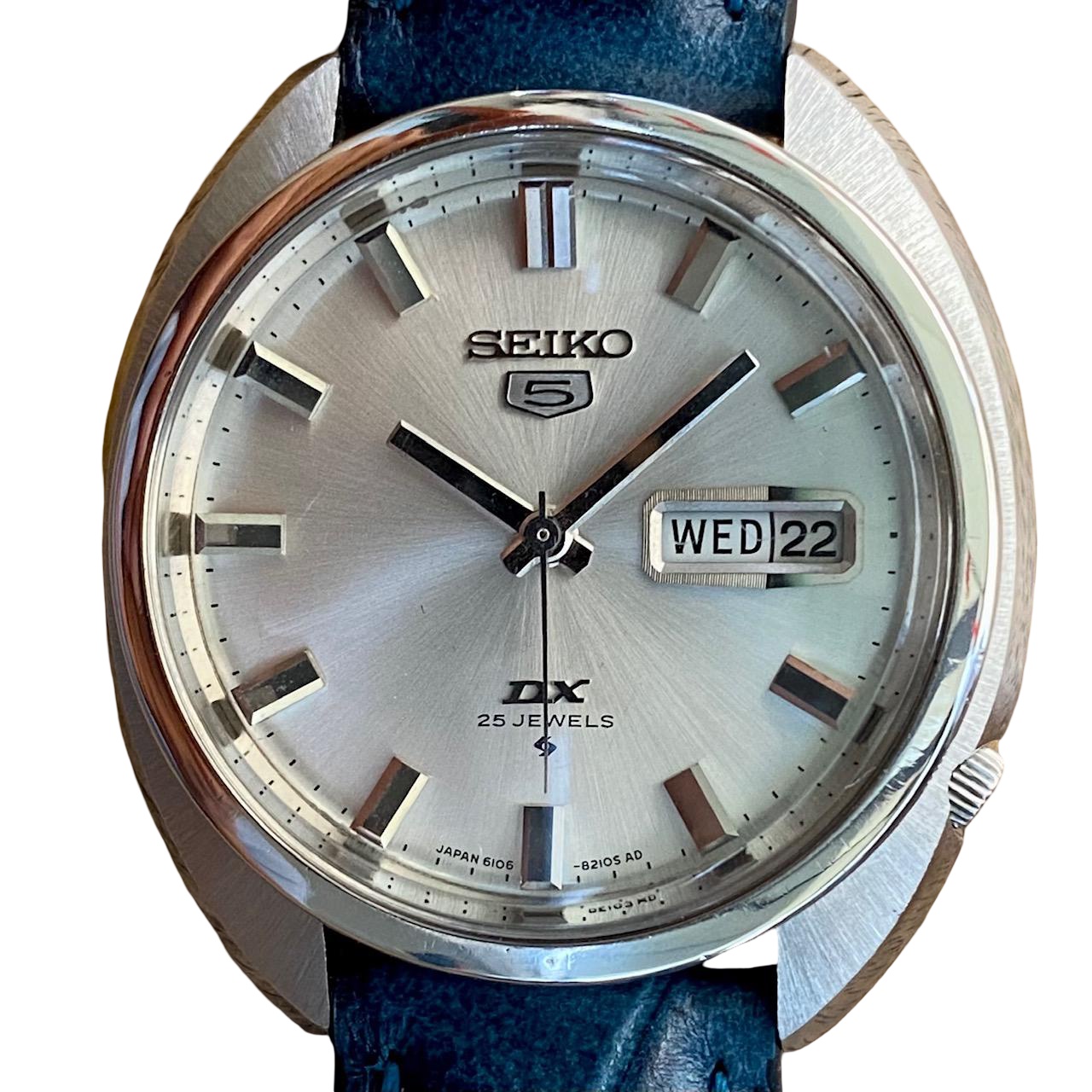 The movement is the 25-jewel Seiko caliber 6106, known for its quality and reliability