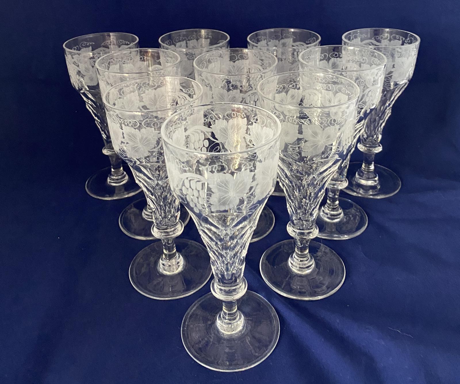 Set 10 Grape & Vine Champagne Flutes. C1930