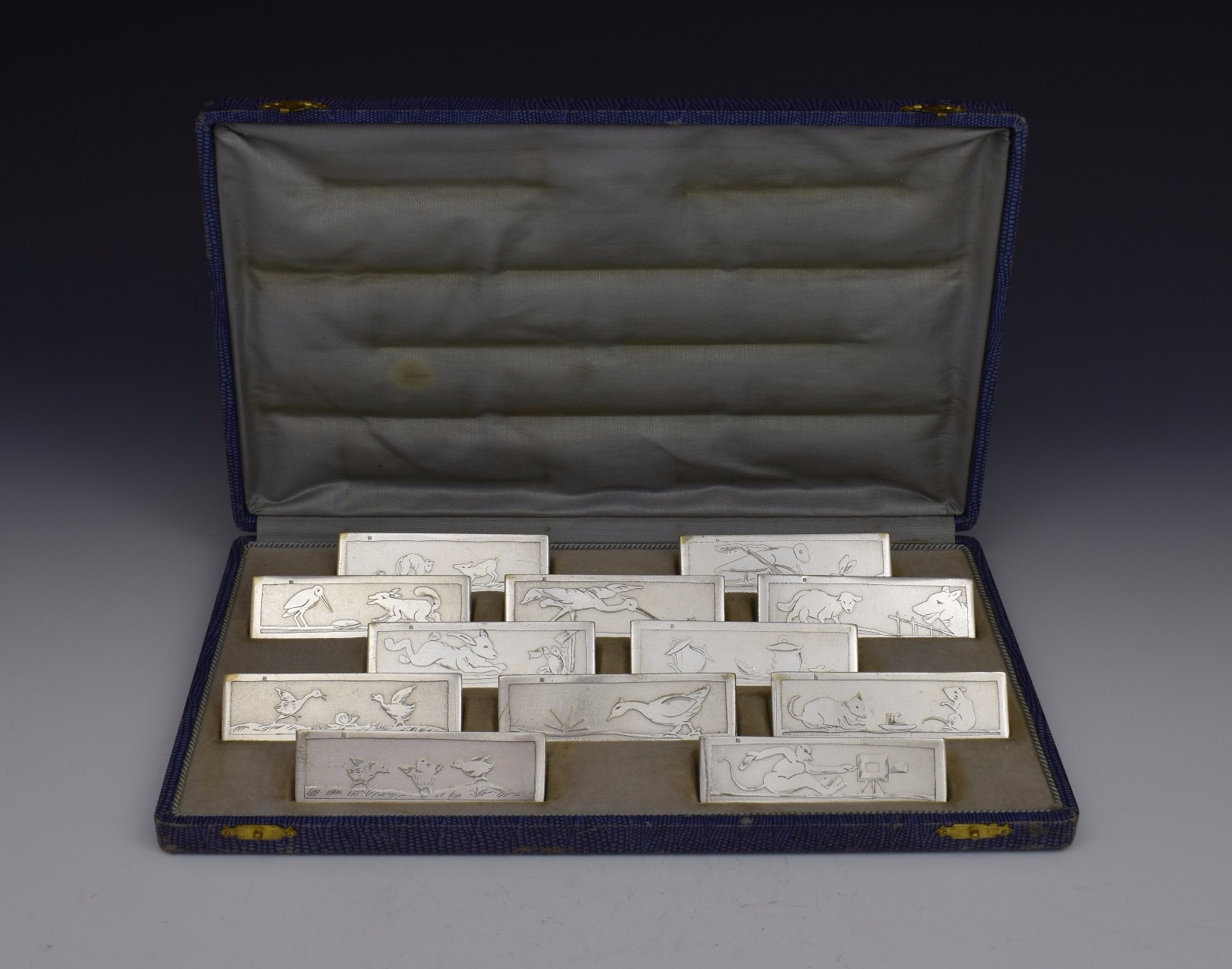 Set 12 Art Deco French Silver Plated Knife Rests Stephane Prudhomme Aesop's Fables