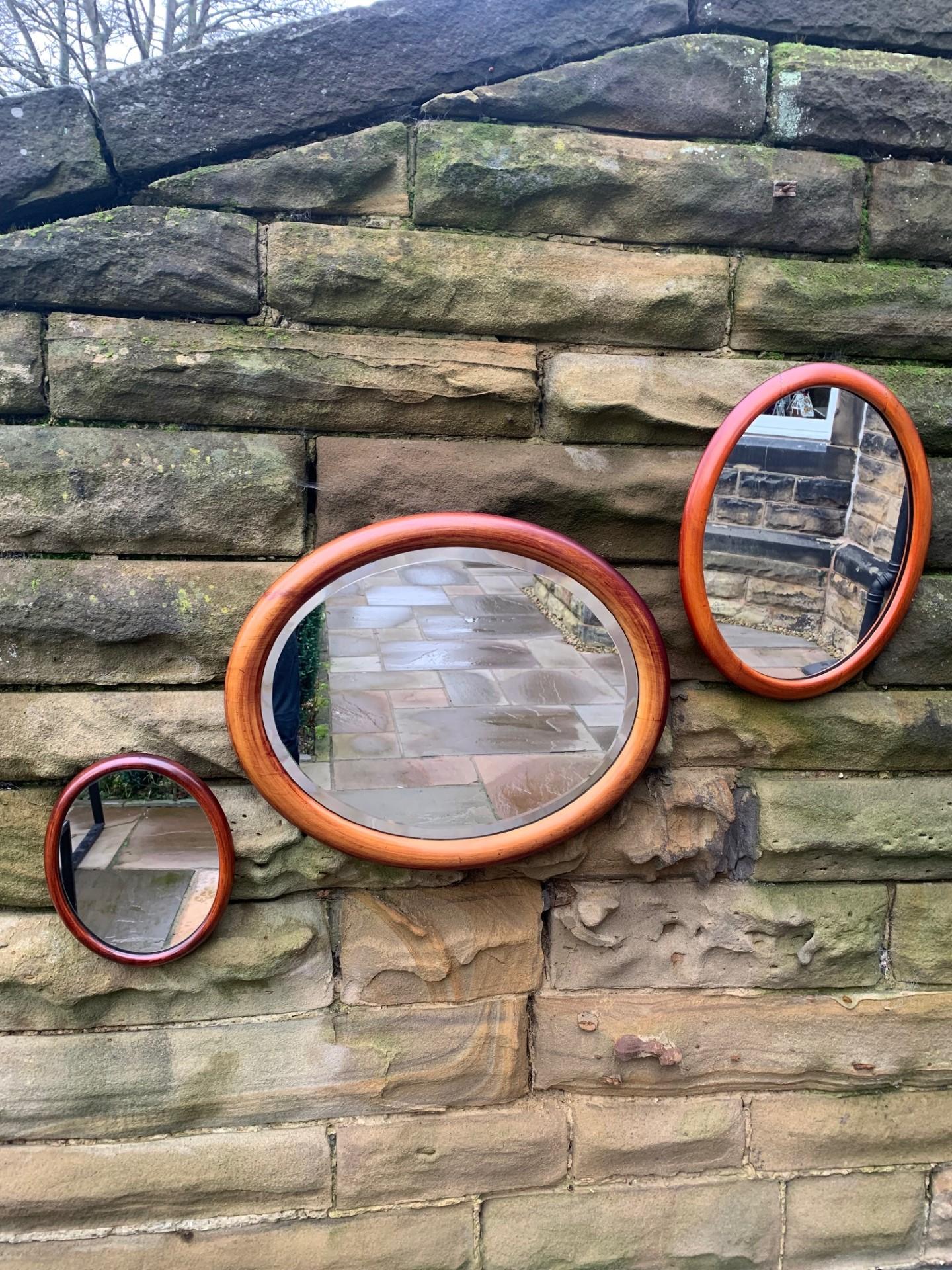 Set 3 Antique Mahogany Oval Wall Mirrors