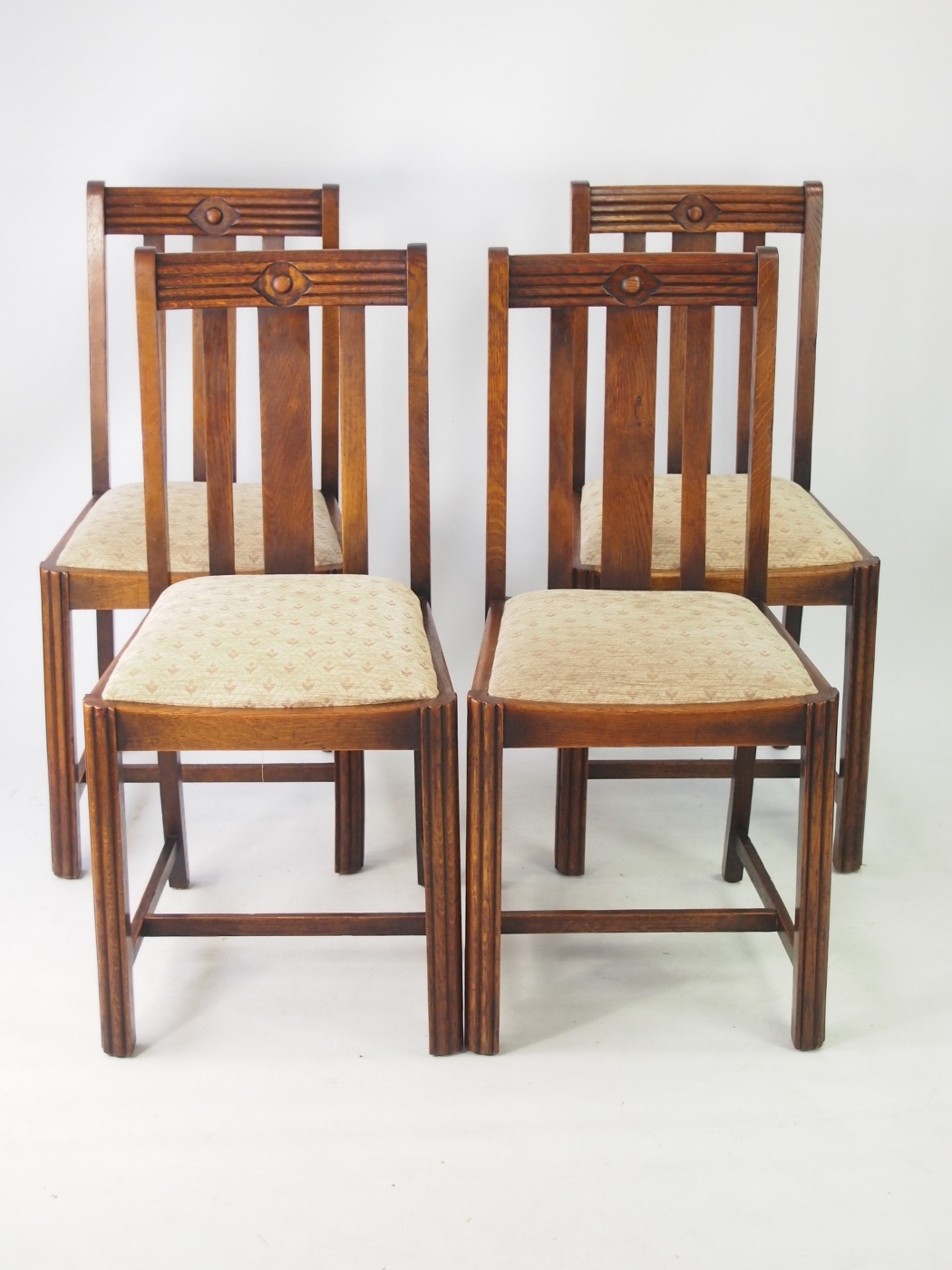 Set 4 Art Deco Oak Dining Chairs c.1930