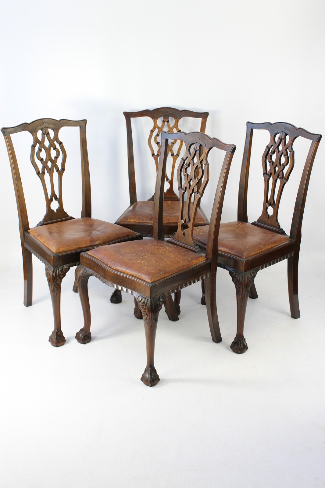 Set 4 Mahogany Chippendale Dining Chairs c.1920 (1 of 1)