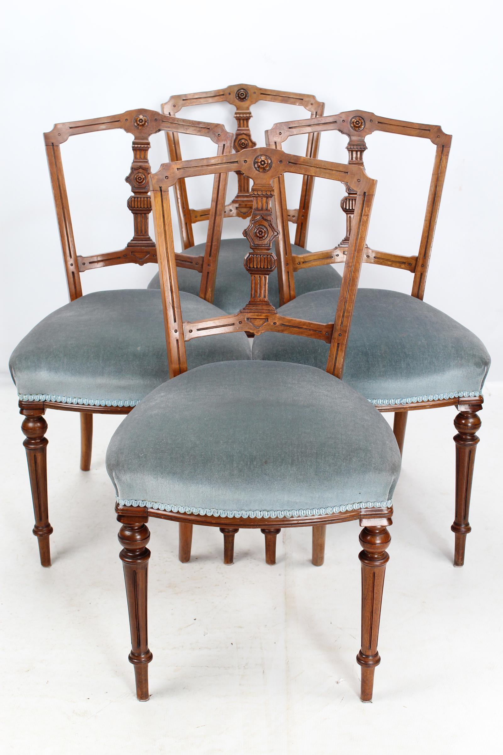 Set 4 Victorian Walnut Balloon Back Chairs