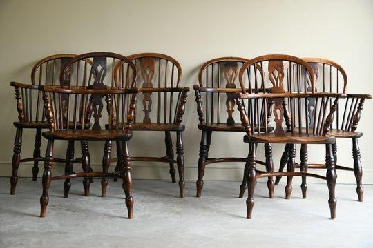 Set 6 Antique Elm Windsor Arm Chairs (1 of 12)