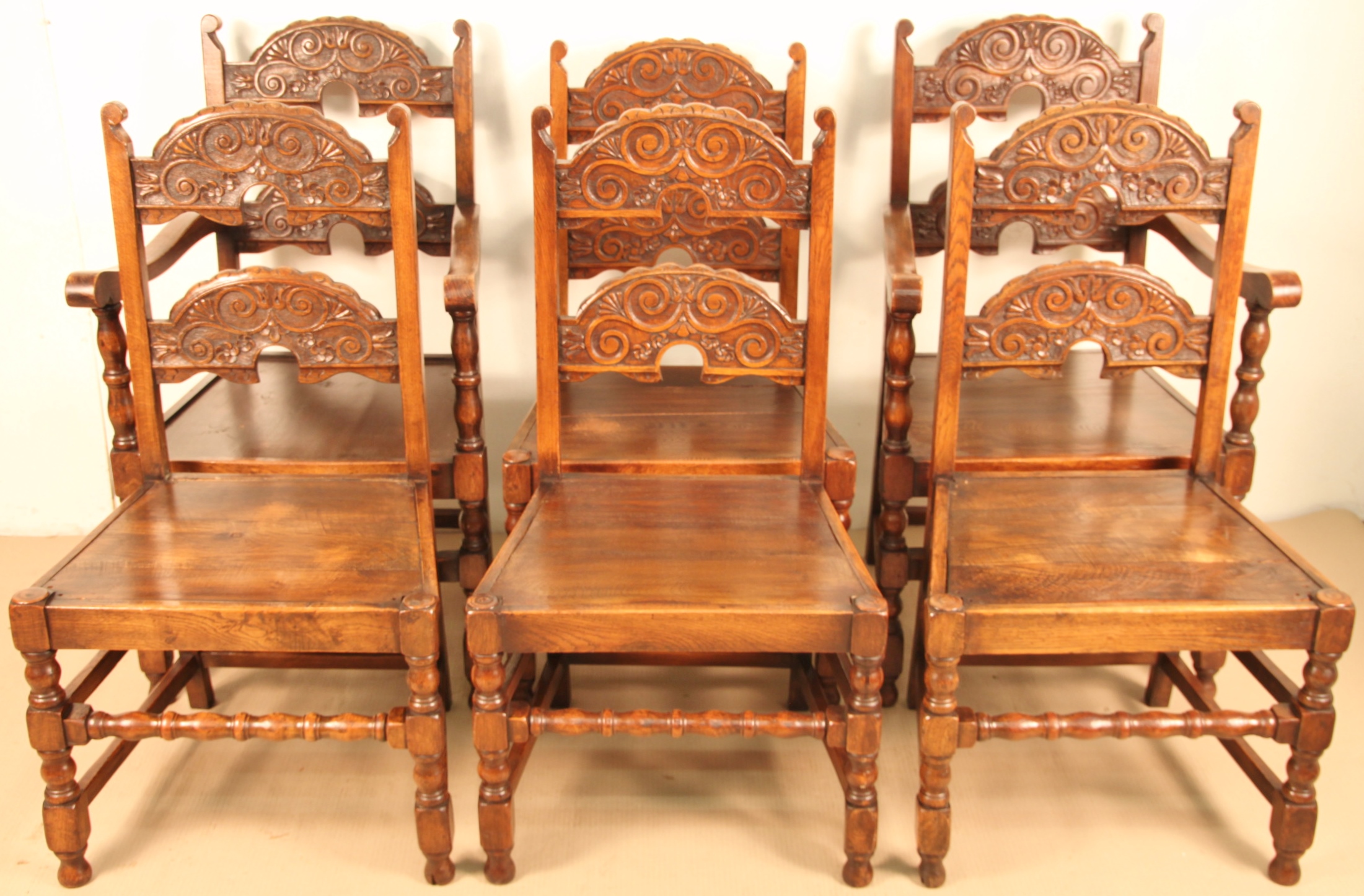 Set 6 Derbyshire Oak Dining Chairs c.1900