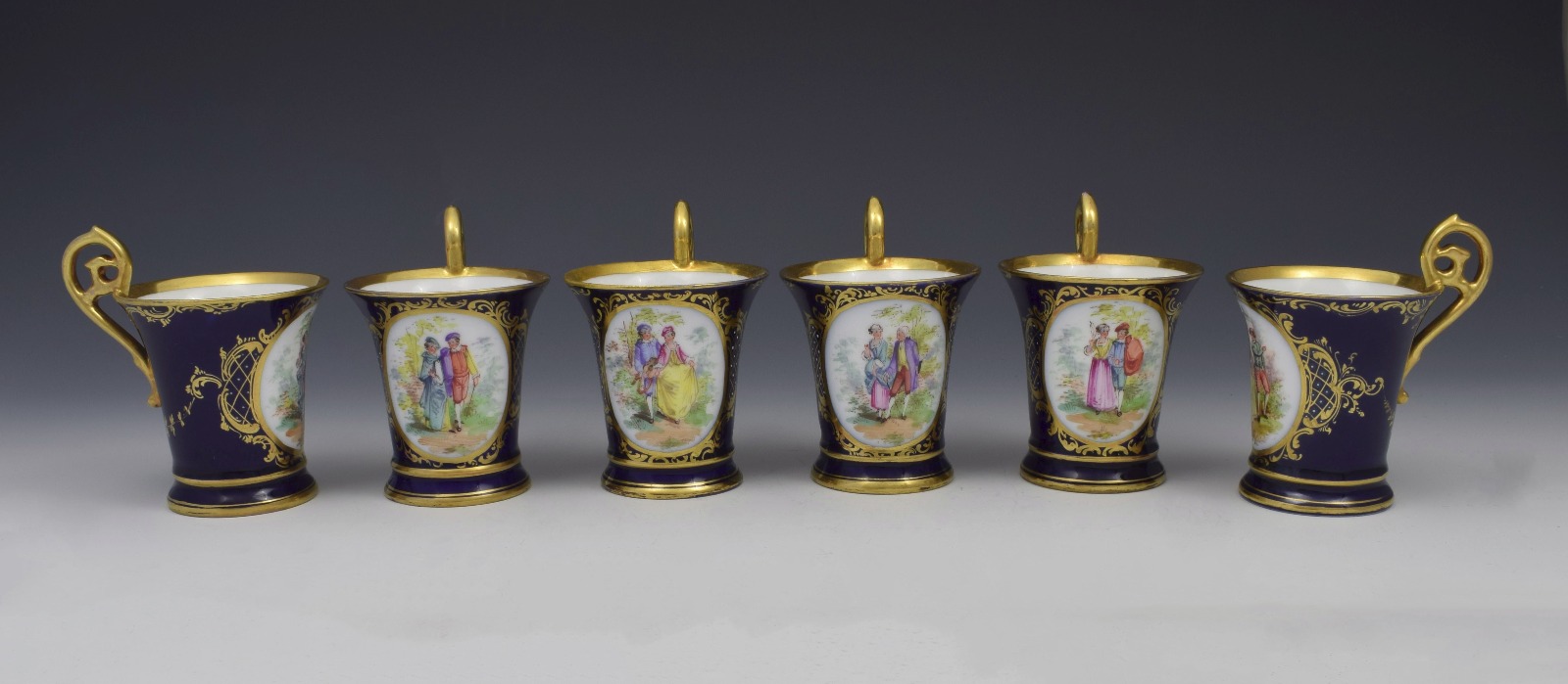 Set 6 Dresden Cabinet Cups Watteau Courting Couples
