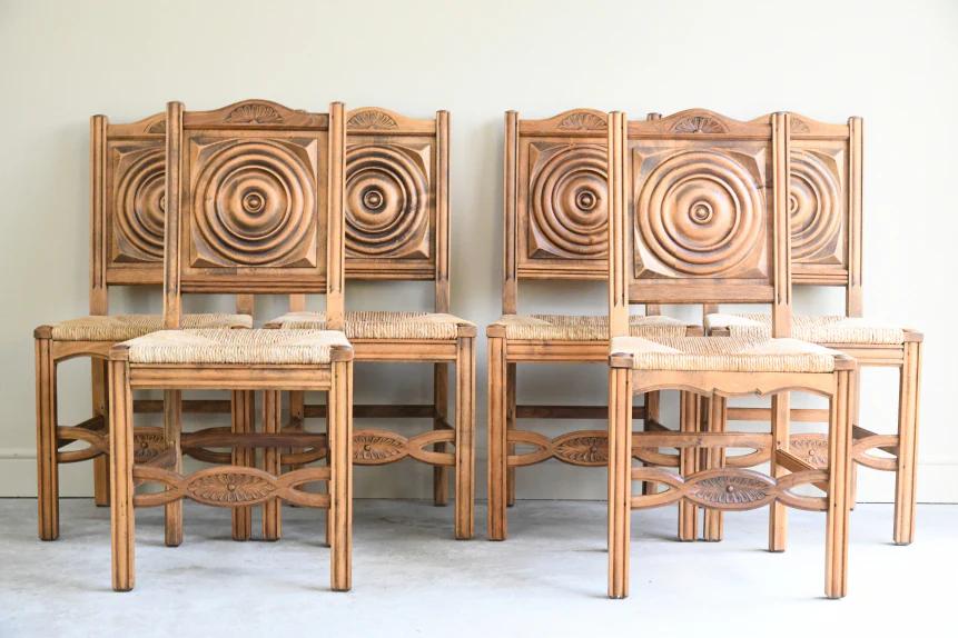 Kernow Furniture has clarified that the Set 6 French Dudouyt Style Dining Chairs (LA563032) is genuinely of the period declared with the date/period of manufacture being Mid 20th Century