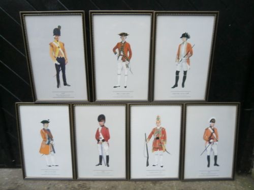 Set 7 Antique Illustrations Of Military Uniforms Prints c.1920
