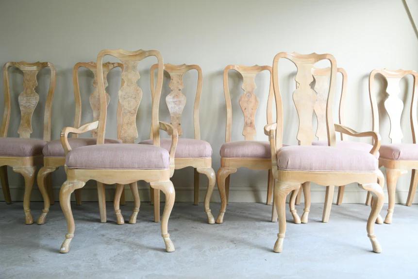 Set 8 Drexel Heritage Limed Ash Queen Anne Style Dining Chairs