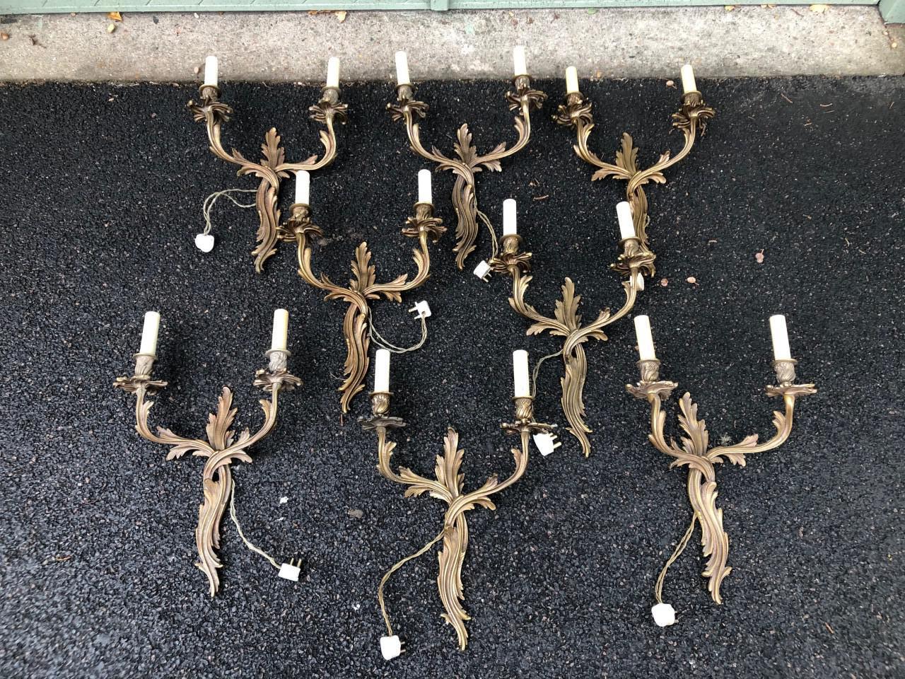 Set 8 Gilt Bronze Rococo Wall Lights