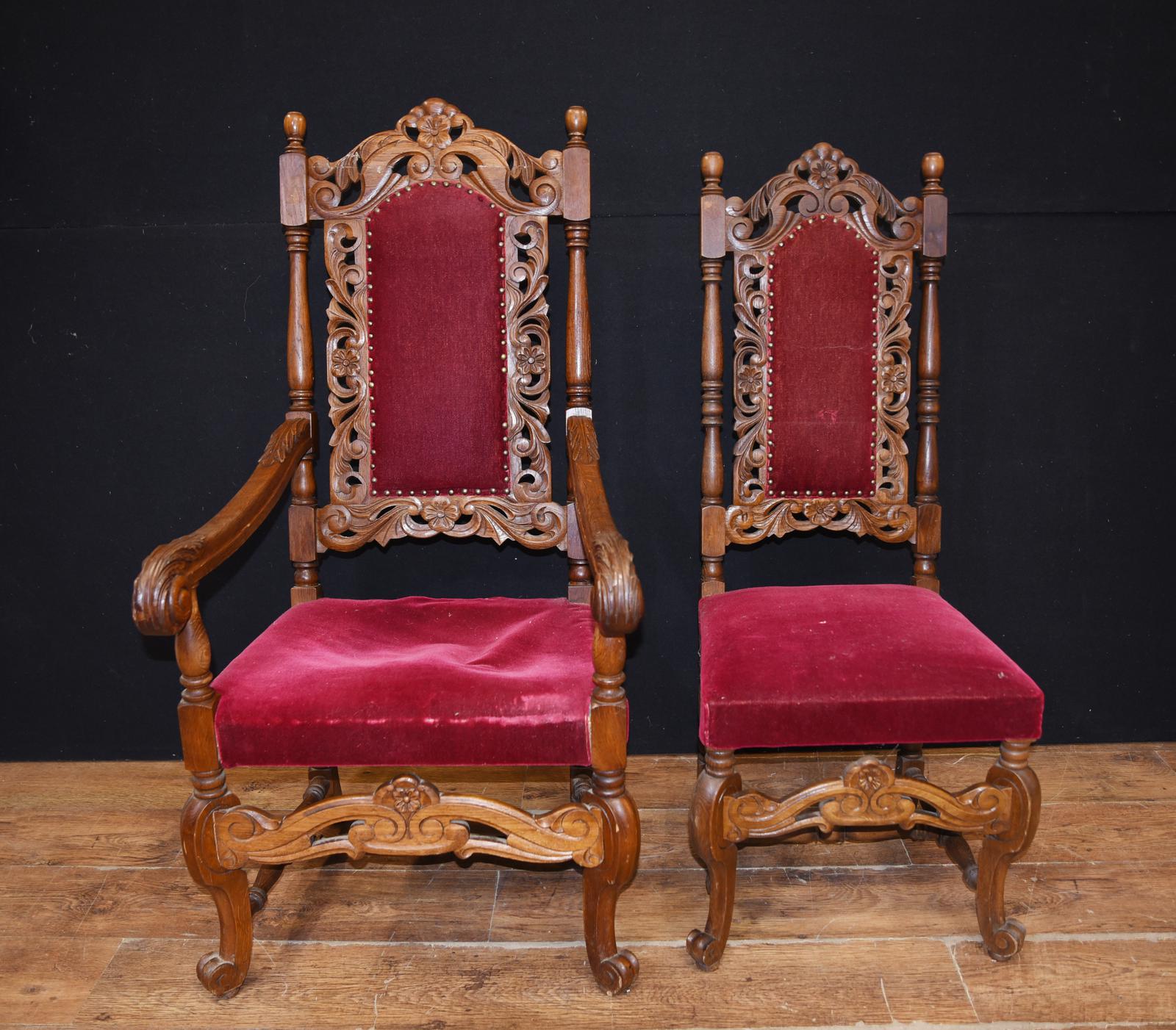 Set Antique Oak Dining Chairs - Farmhouse Kitchen Diners 1880