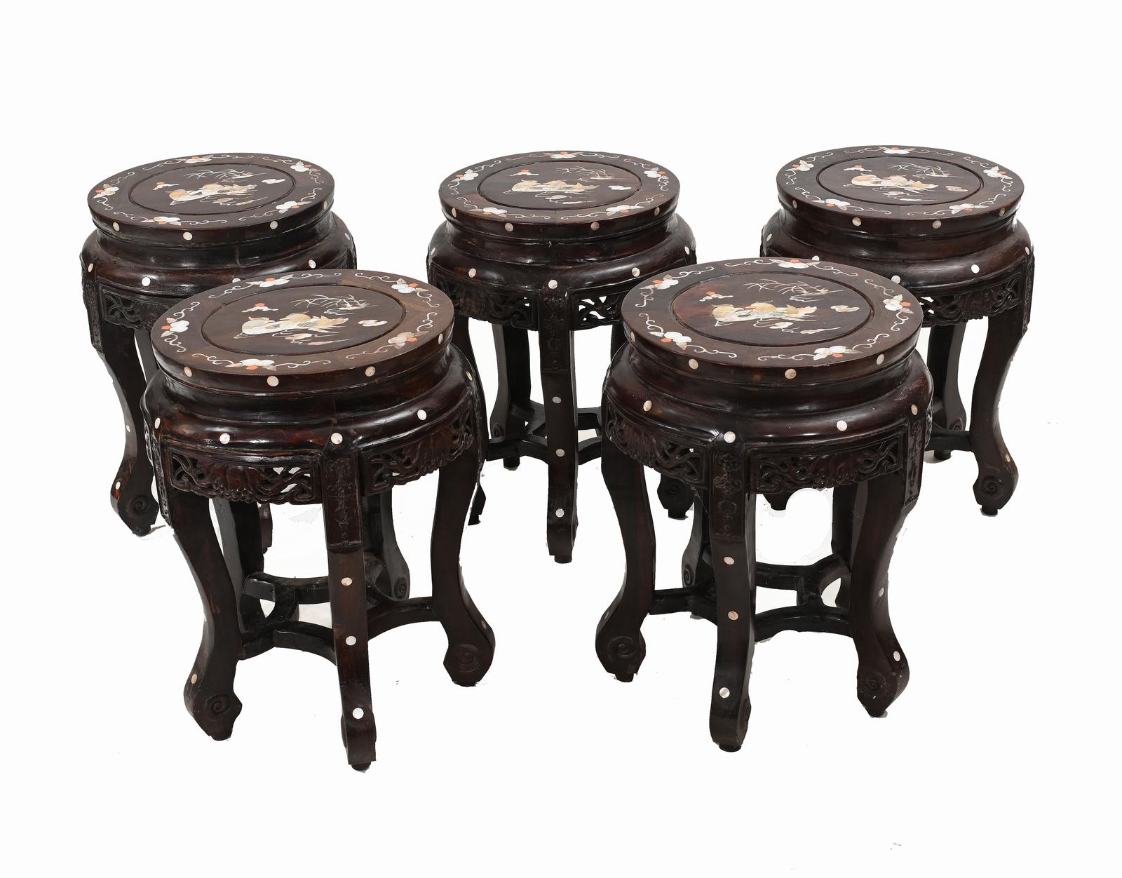 Set Chinese Pedestal Stands Stools Tables Mother Of Pearl Inlay