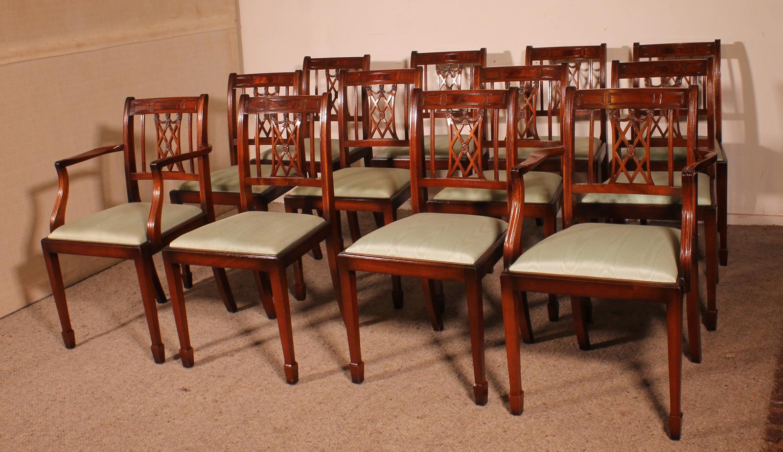 Set of 10 Chairs & Two Armchairs in Mahogany - Hepplewhite Style