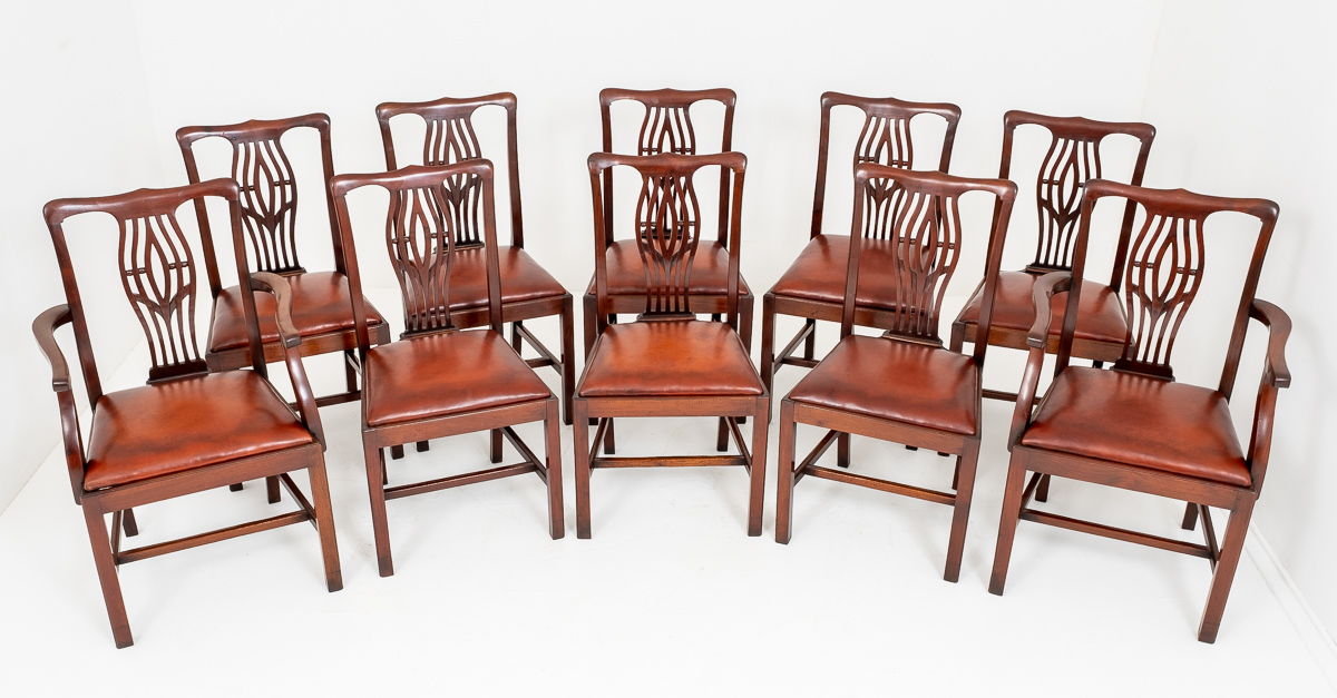 Set of 10 Chippendale Style Mahogany Dining Chairs