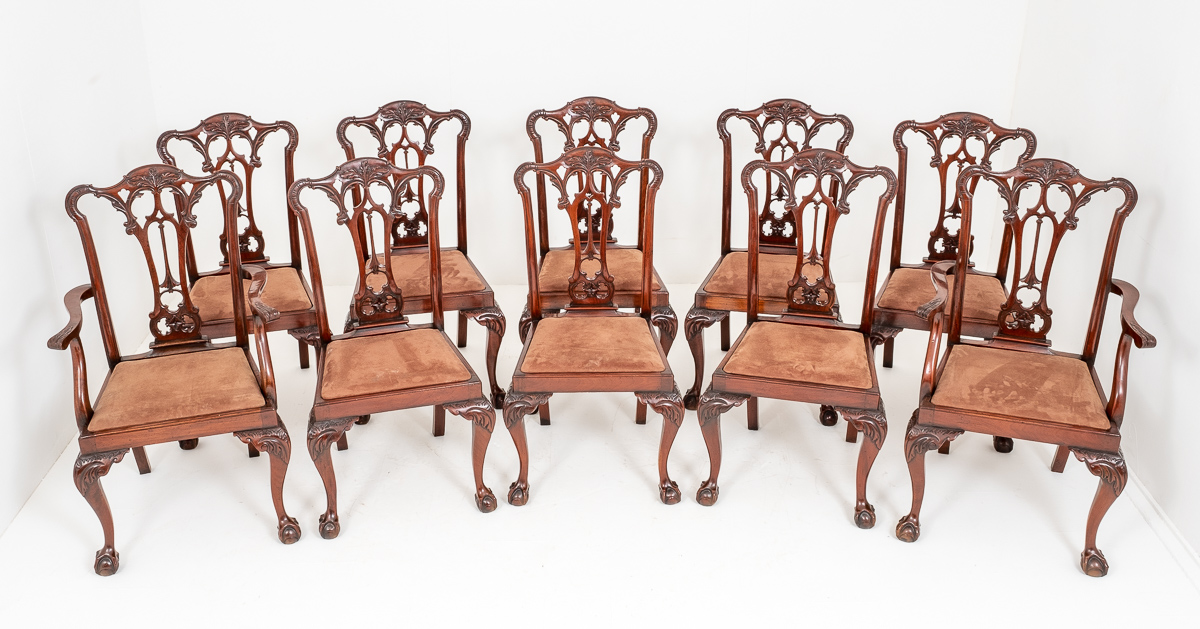Set of 10 Chippendale Style Mahogany Dining Chairs c.1920
