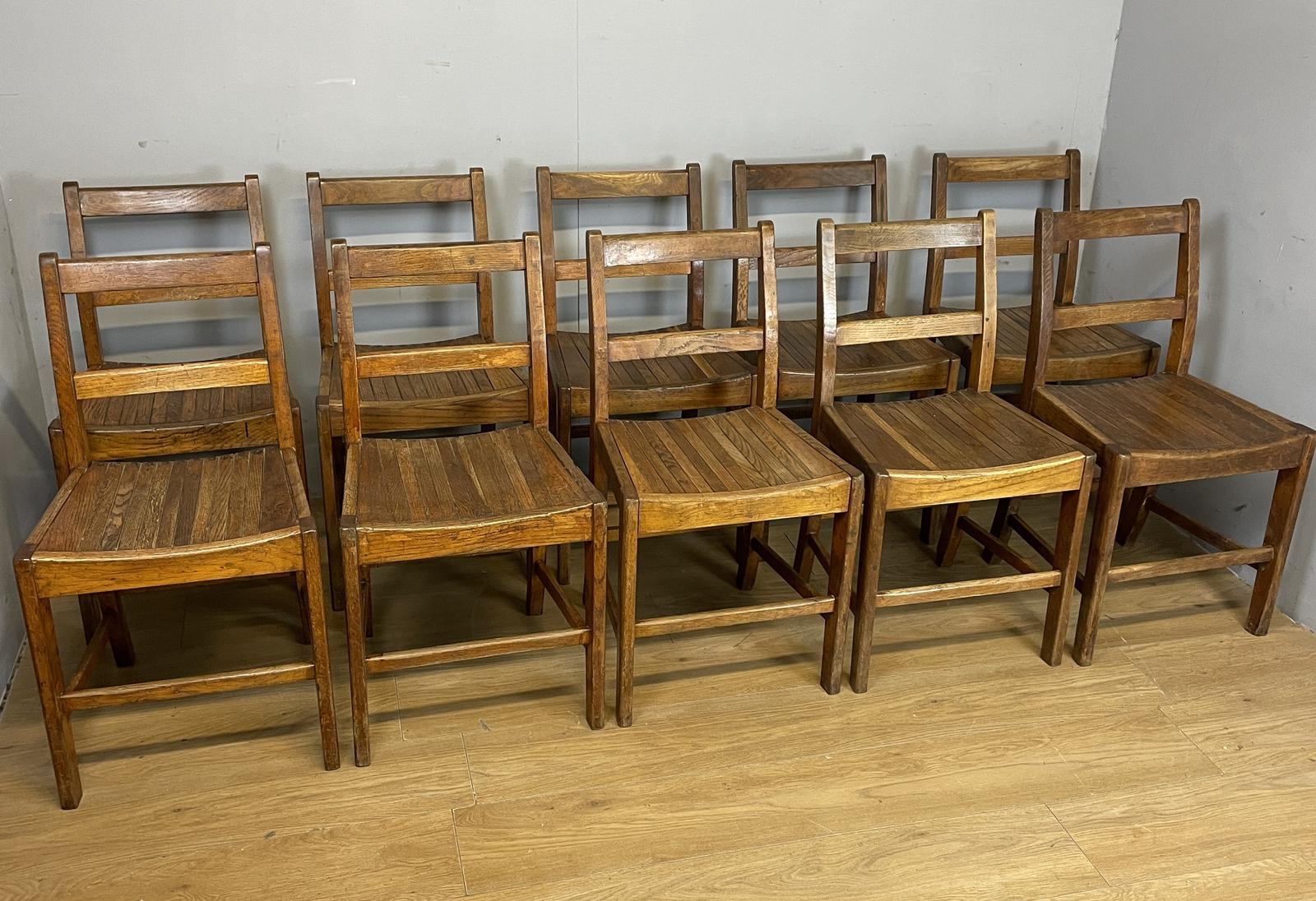 Set of 10 Golden Oak Saddle Seat Chairs