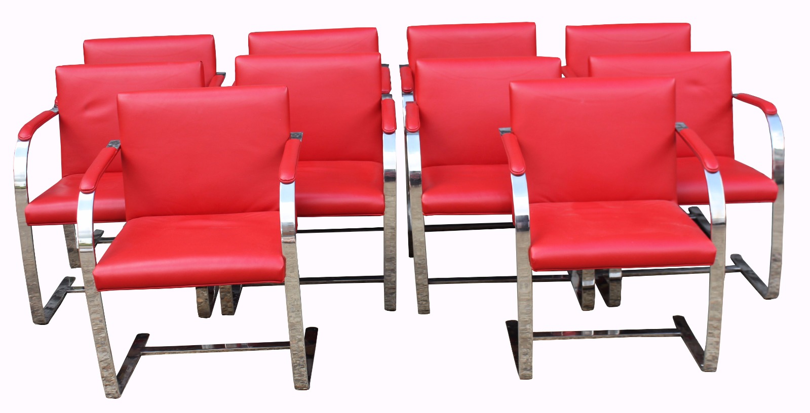 Set of 10 Knoll Style Chrome & Leather Dining Chairs