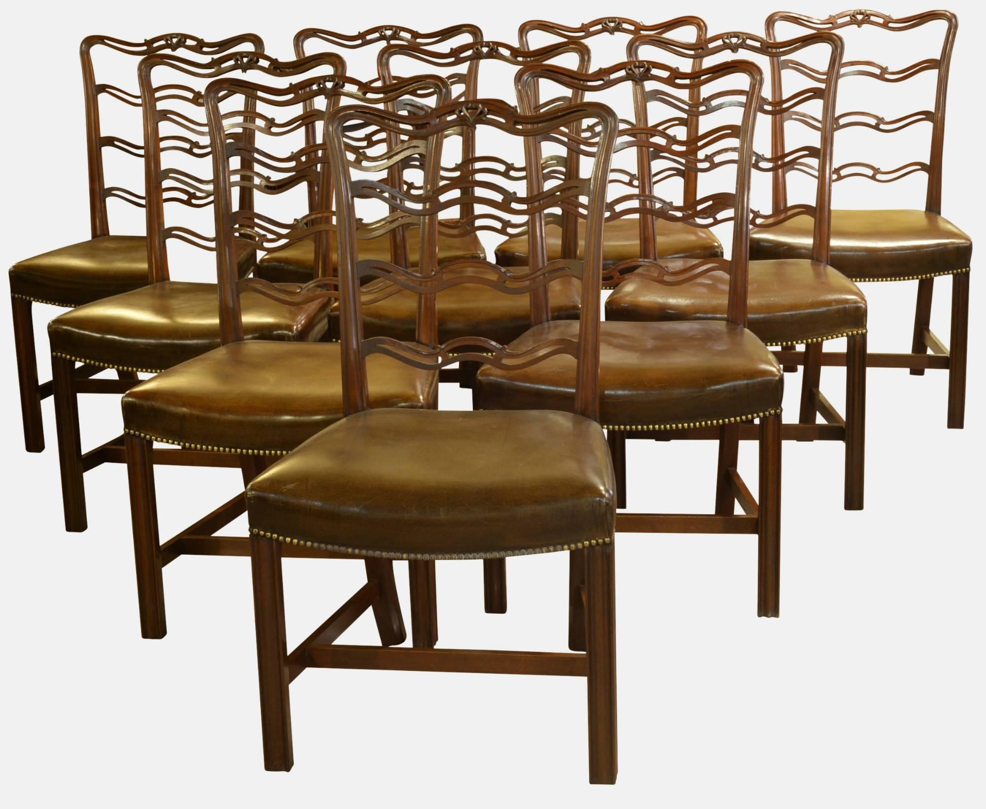 Set of 10 Mahogany Chippendale Style Dining Chairs c.1920