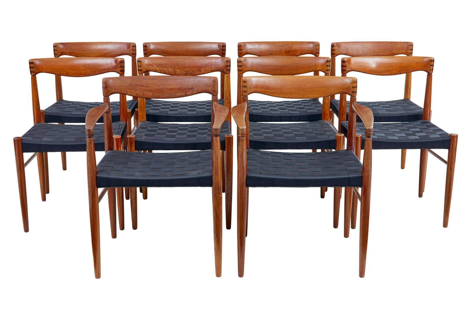 Set of 10 Mid Century Teak Dining Chairs by Bramin