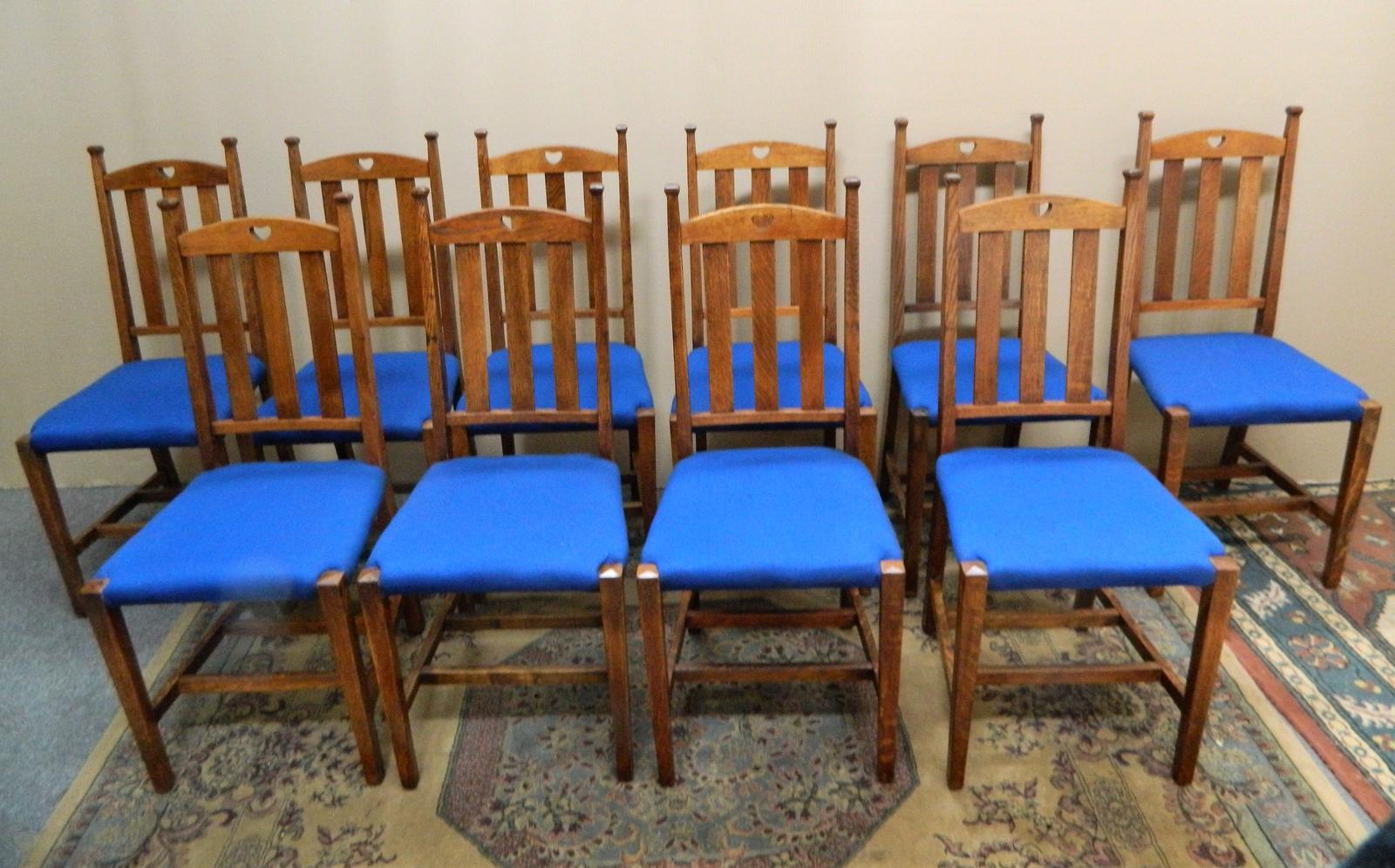 Set of 10 Oak Arts & Crafts Dining Chairs